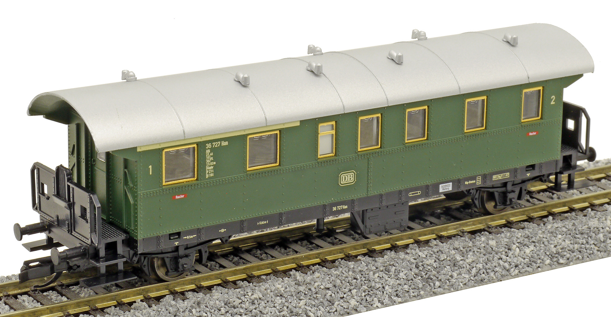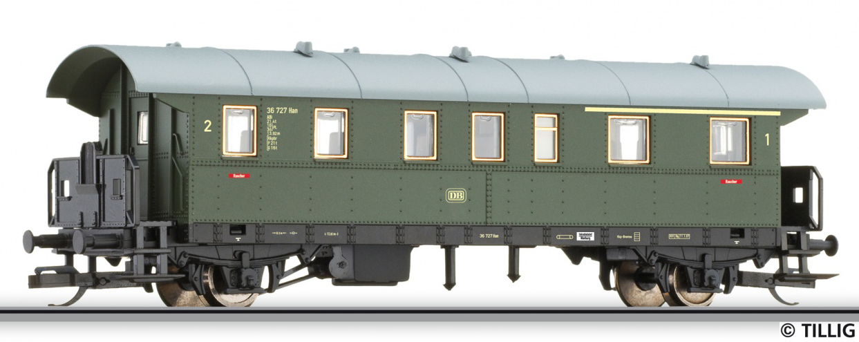 | osobní vůz zelený s šedou střechou 1./2. tř. |