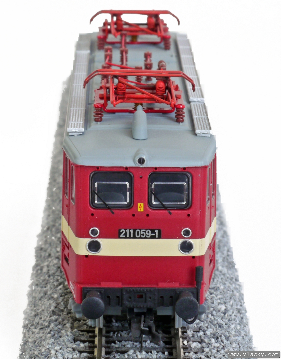 Popis   elektrická lokomotiva červená s krémovým pruhem, šedá střecha a šedé podvozky