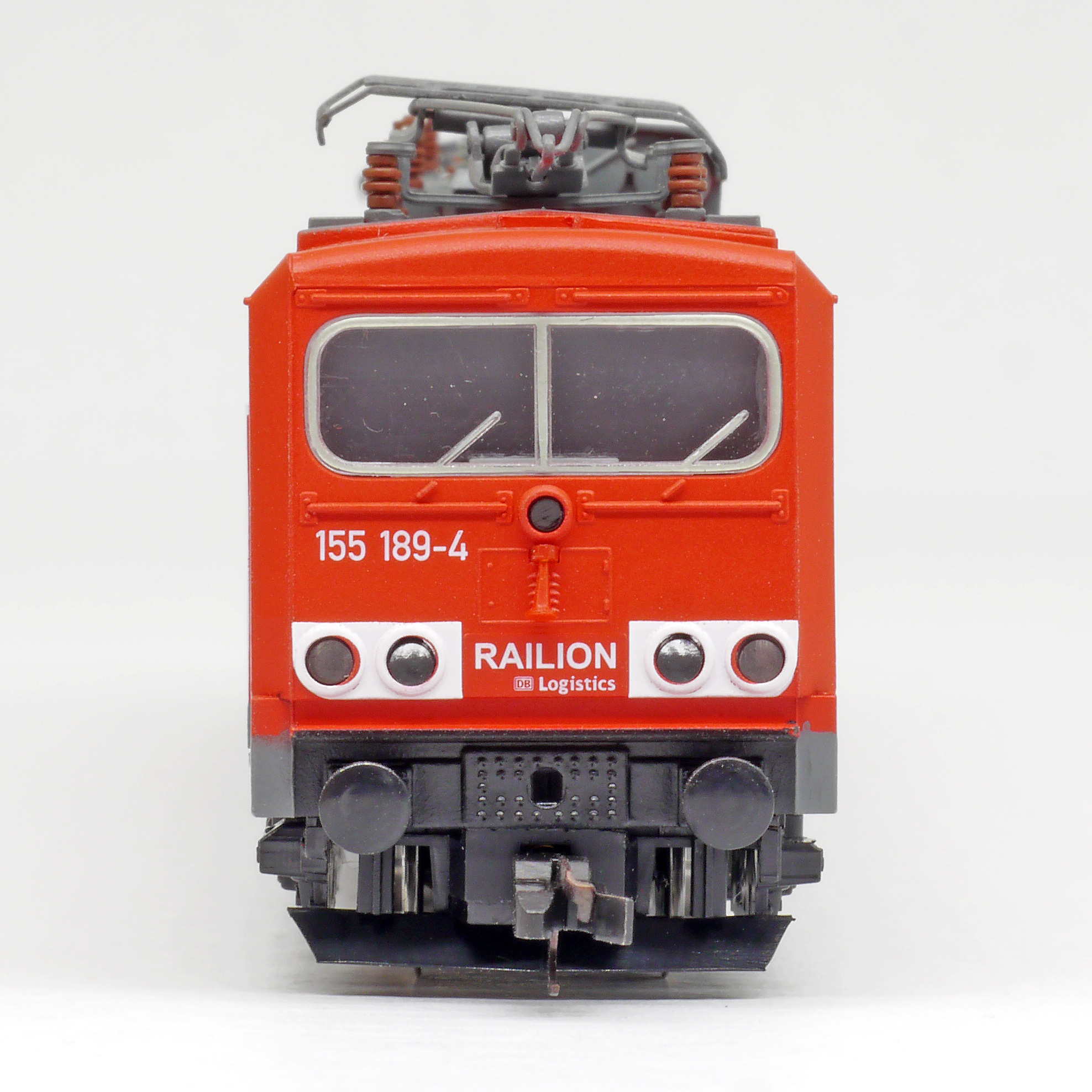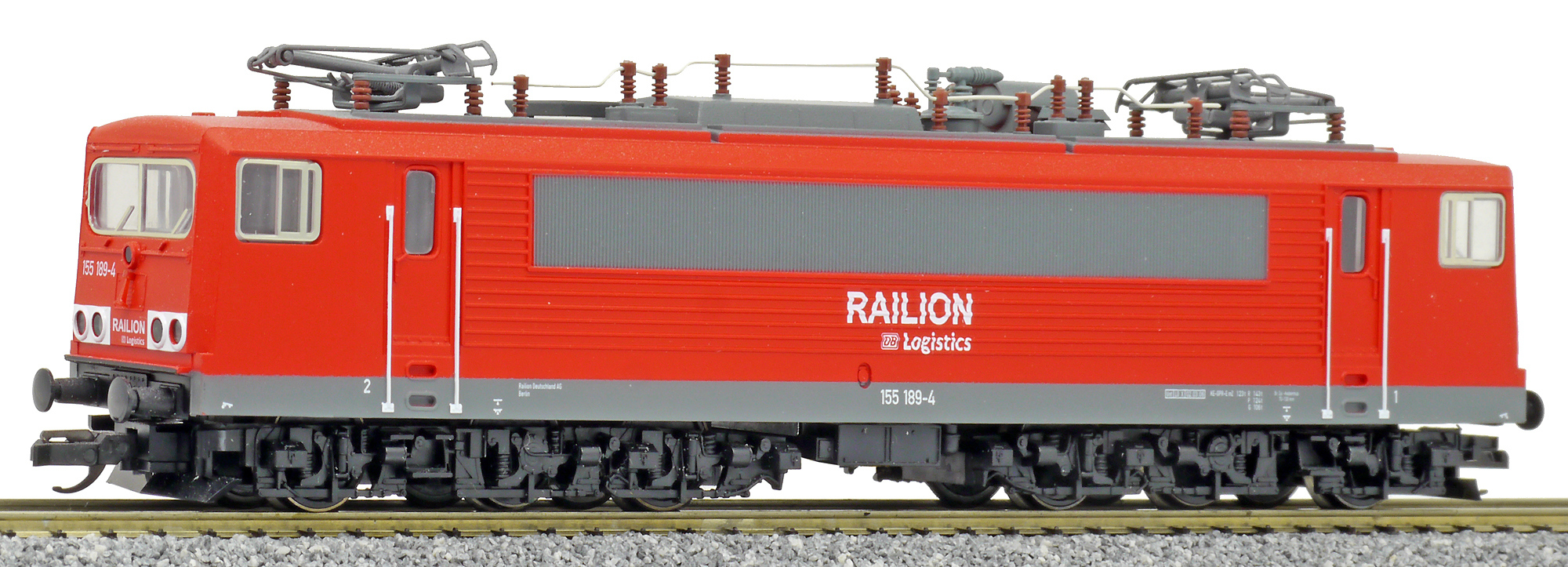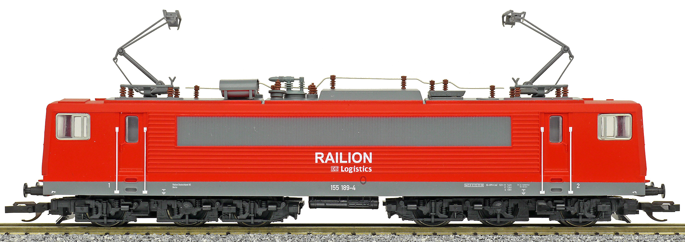 Popis   elektrická lokomotiva červená s tmavě šedým rámem, černé podvozky „Railion DB Logistics“