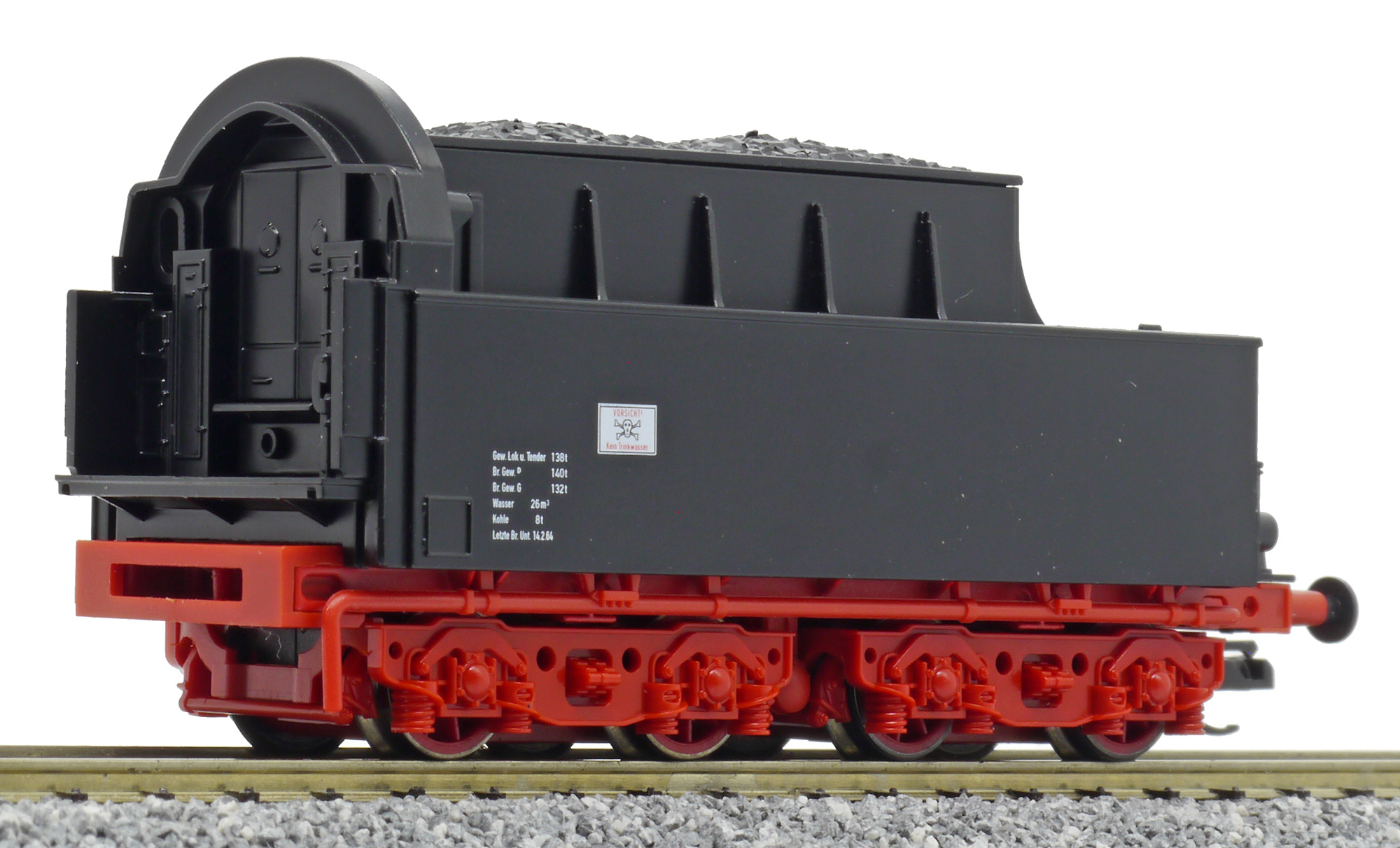 Popis   parní lokomotiva černá s červeným pojezdem a kouřovými plechy