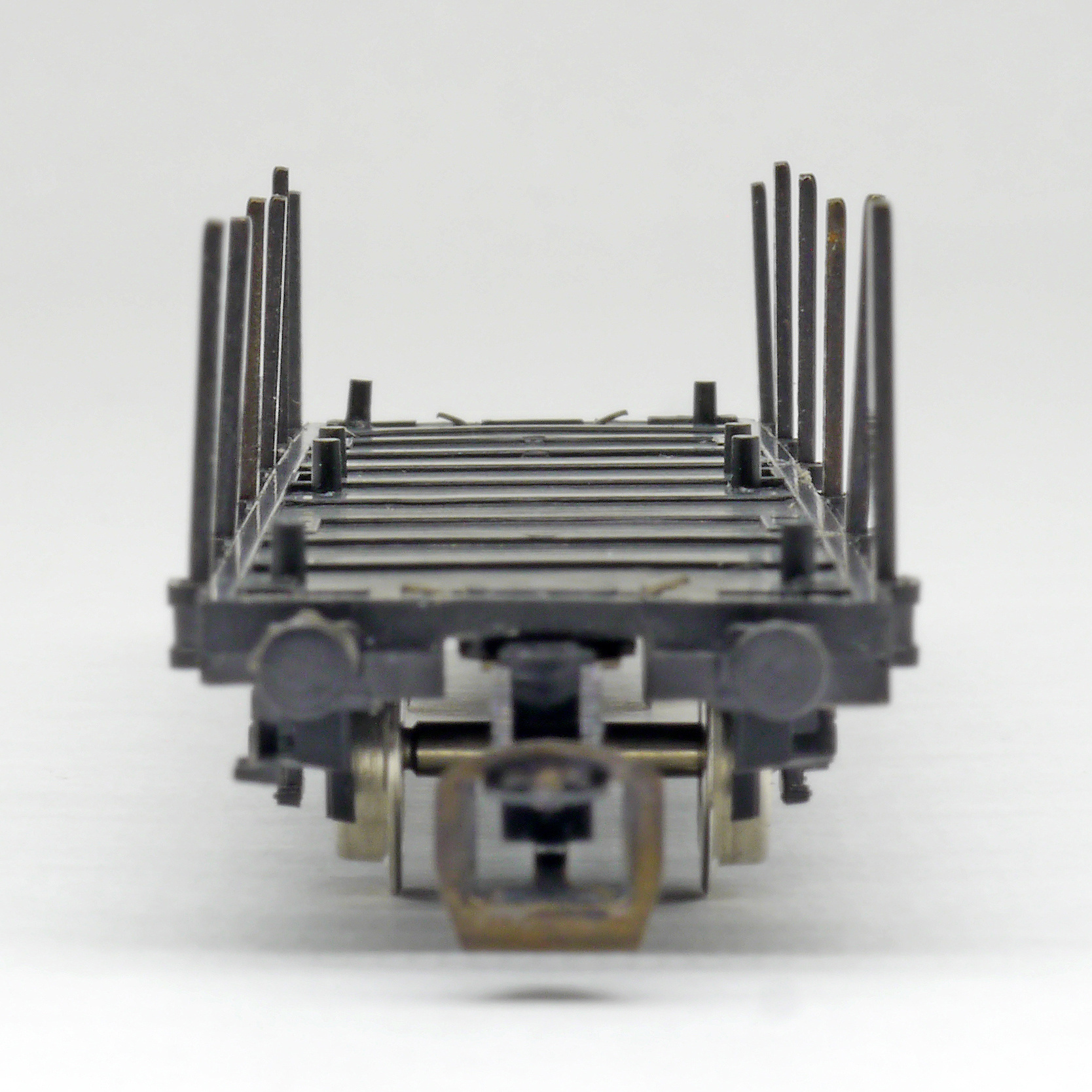 plošinový nákladní vůz černý s klanicemi