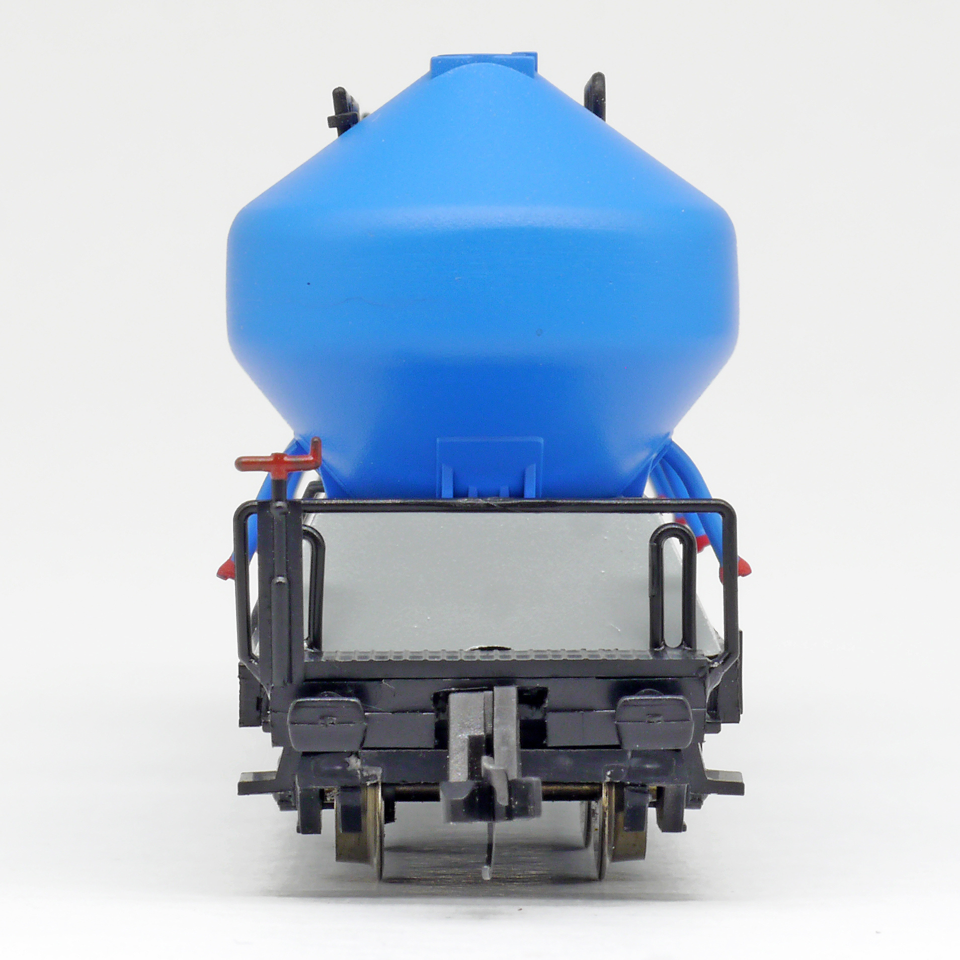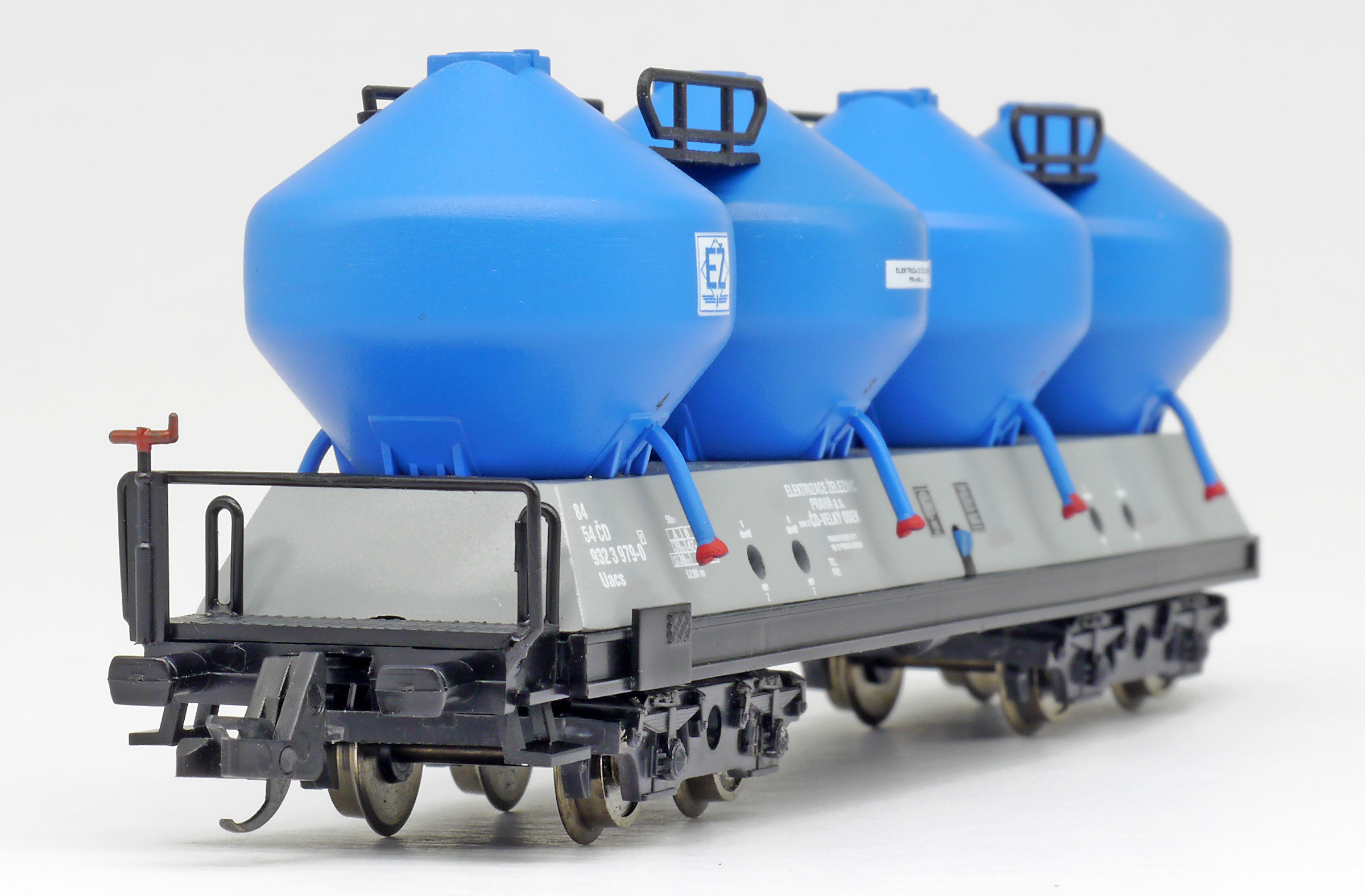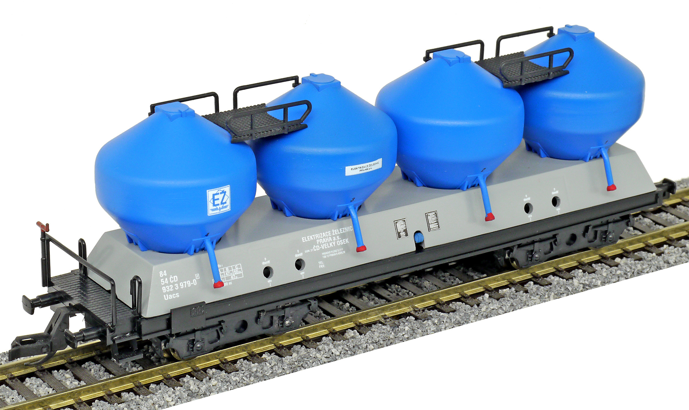 | samovýsypný nákladní vůz šedý s modrými nádobami „Elektrizace železnic“ |