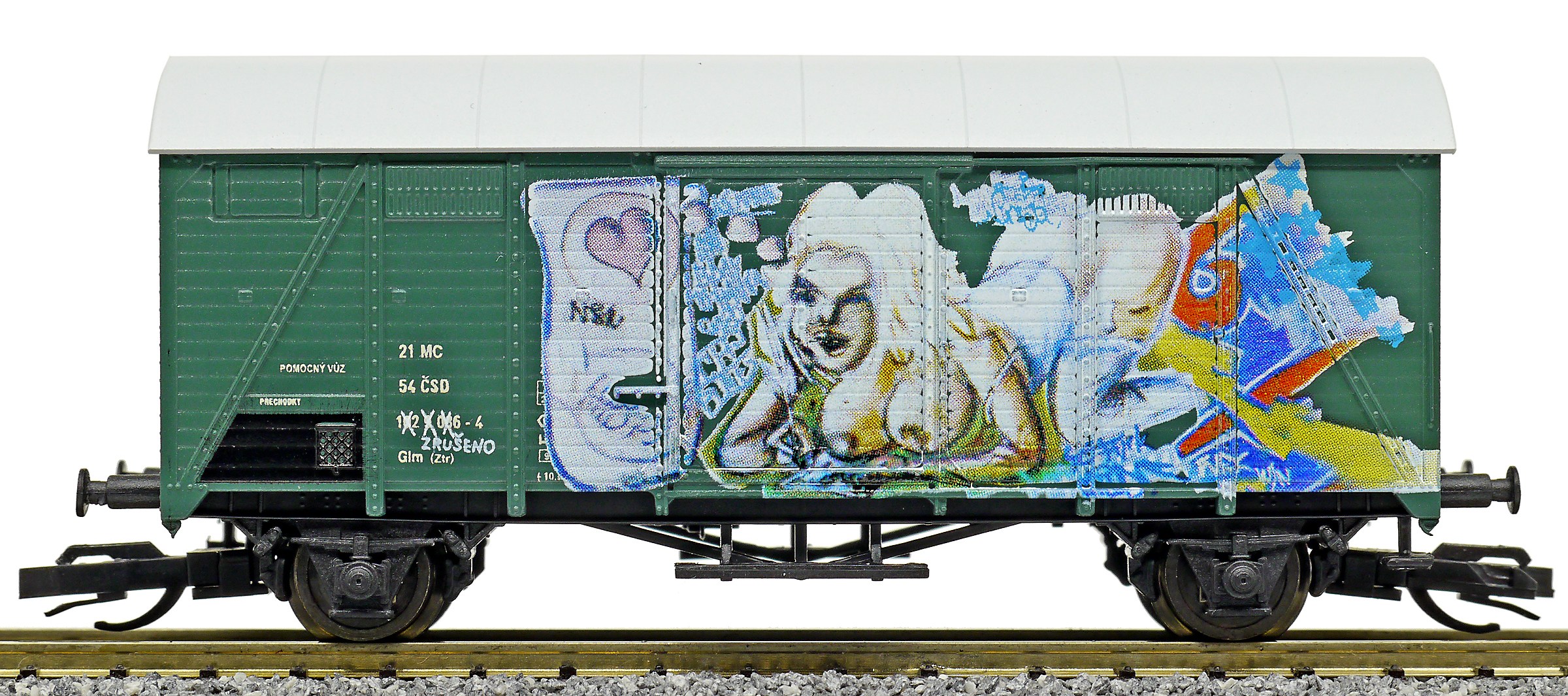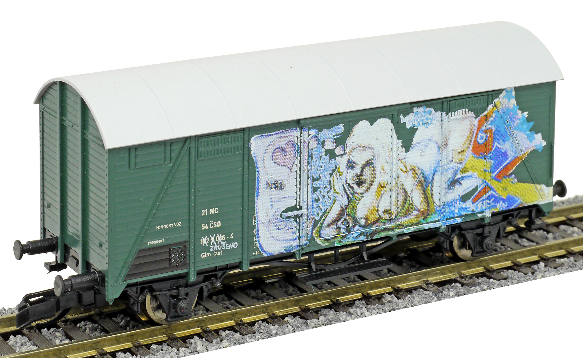 | krytý nákladní vůz zelený s šedou střechou pracovní vůz „Graffiti” |