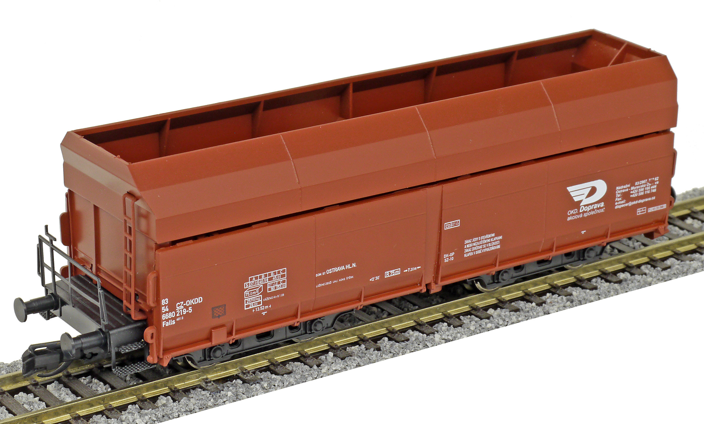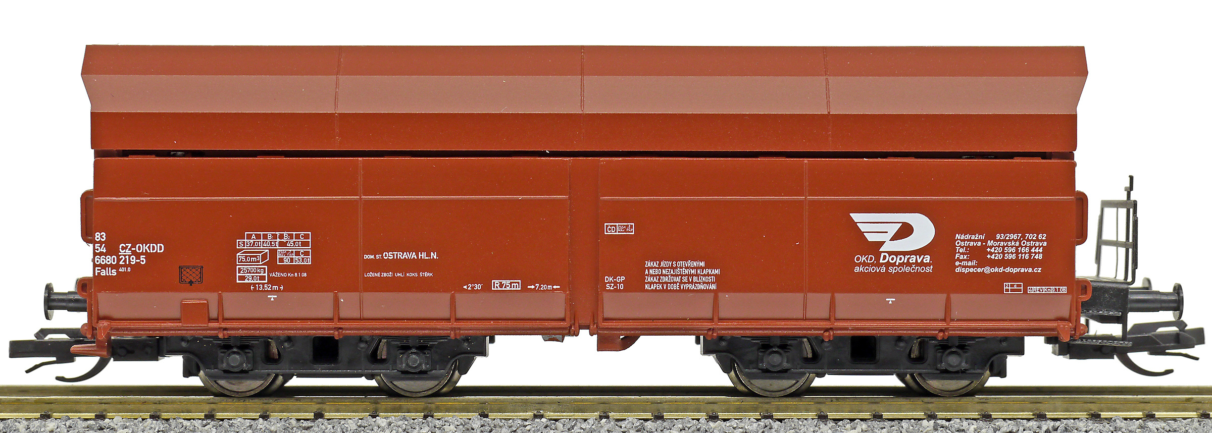 Popis   nákladní samovýsypný vůz červenohnědý „OKD Doprava“
