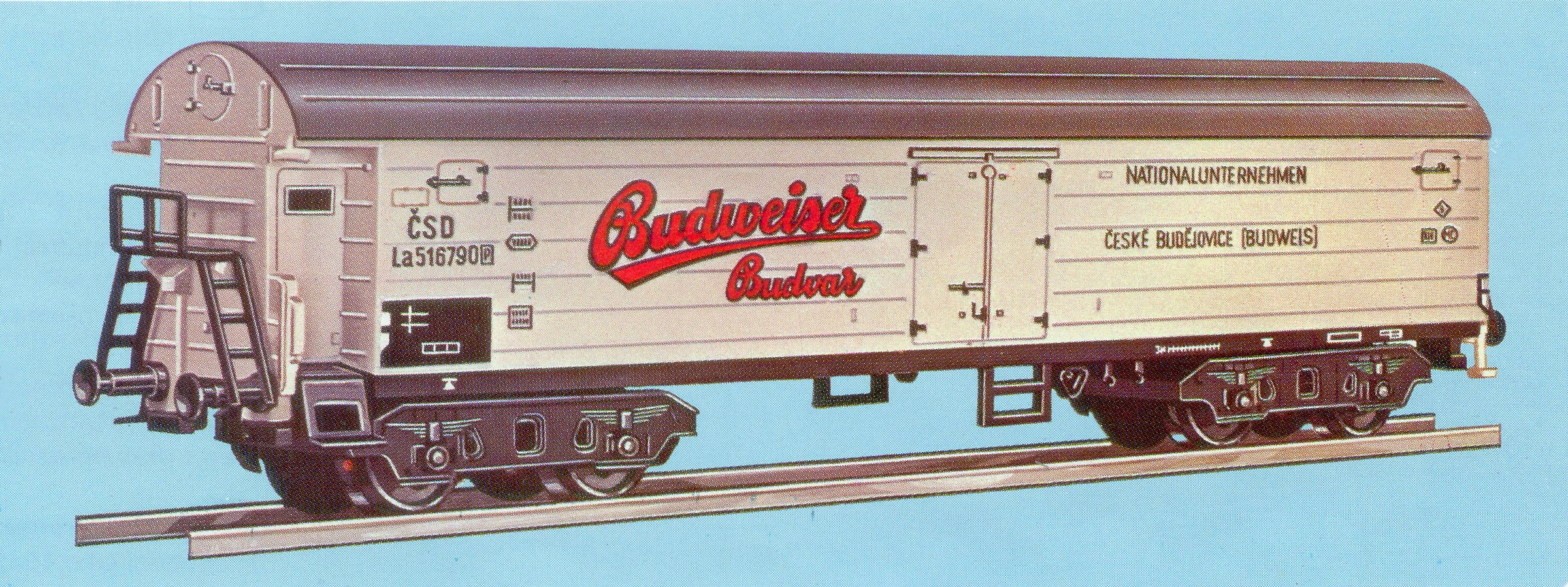 nákladní chladící vůz bílý s šedou střechou „Budweiser-Budvar“