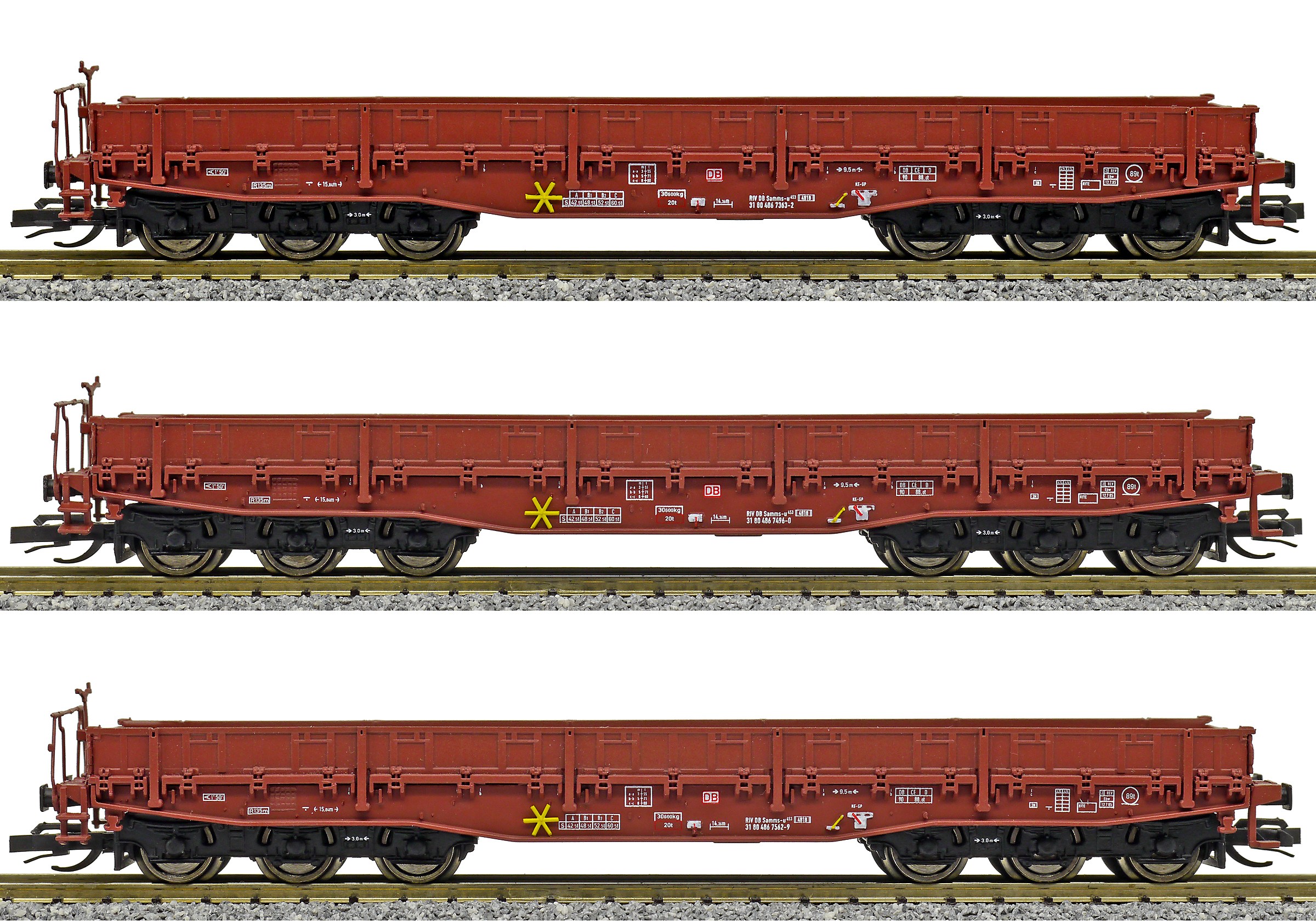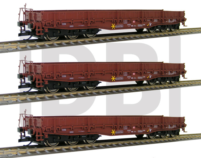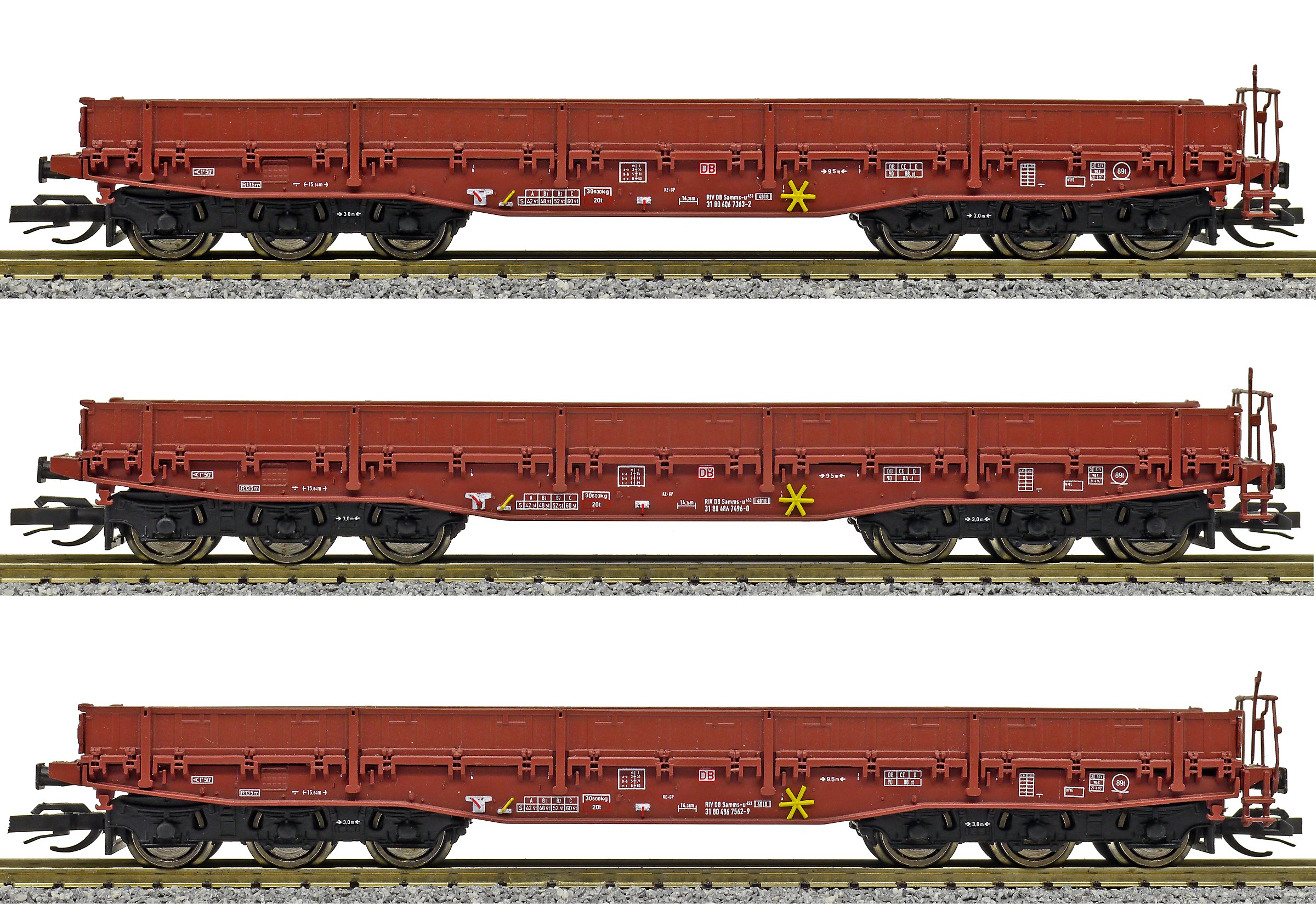 | set tří červenohnědých nízkostěnných vozů Samms |