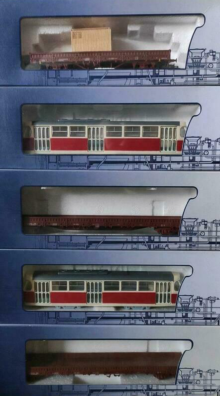 | set dvou nákladních vozů Res s nákladem tramvají Tatra a vozu Ks s bednou |