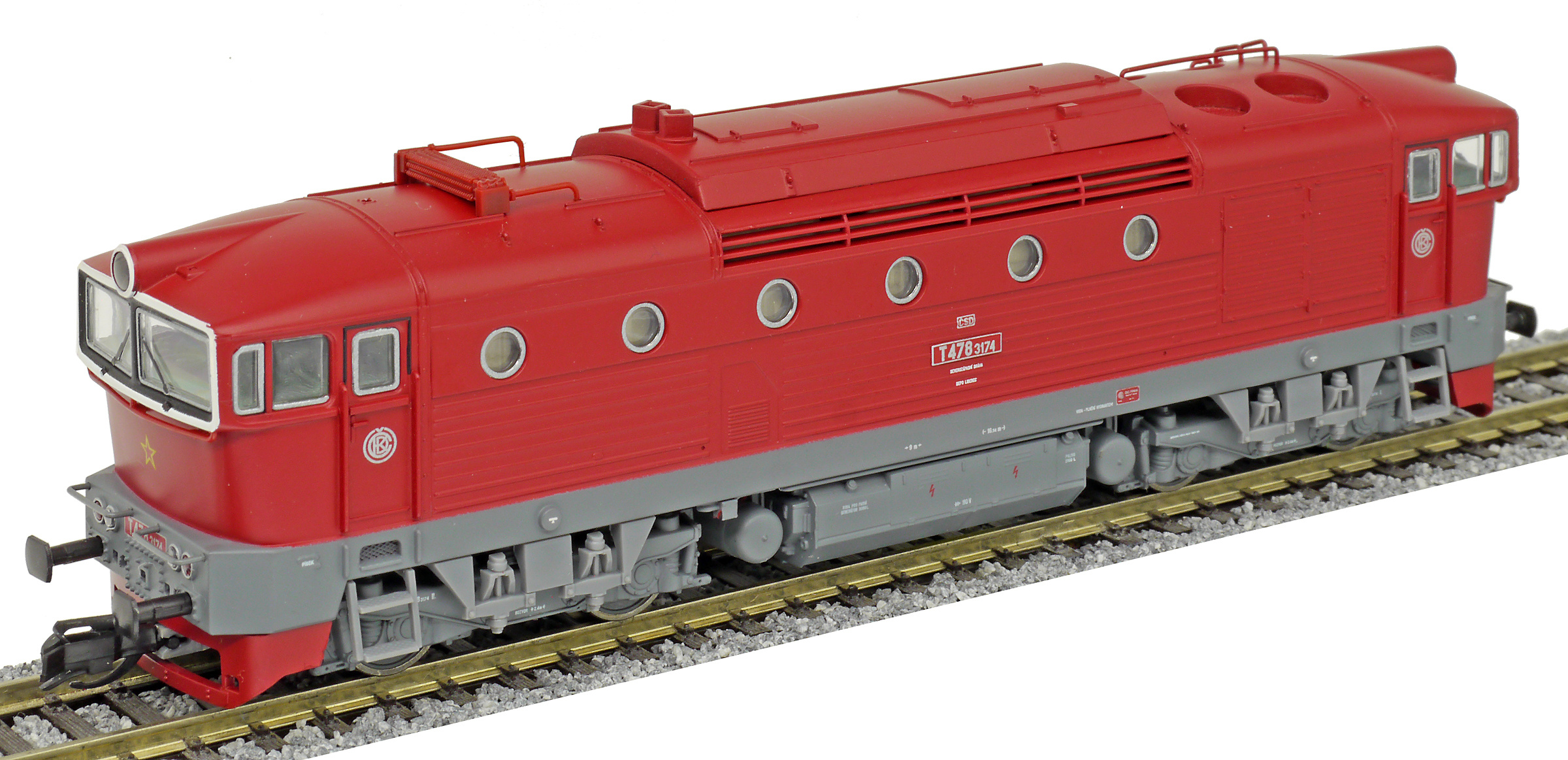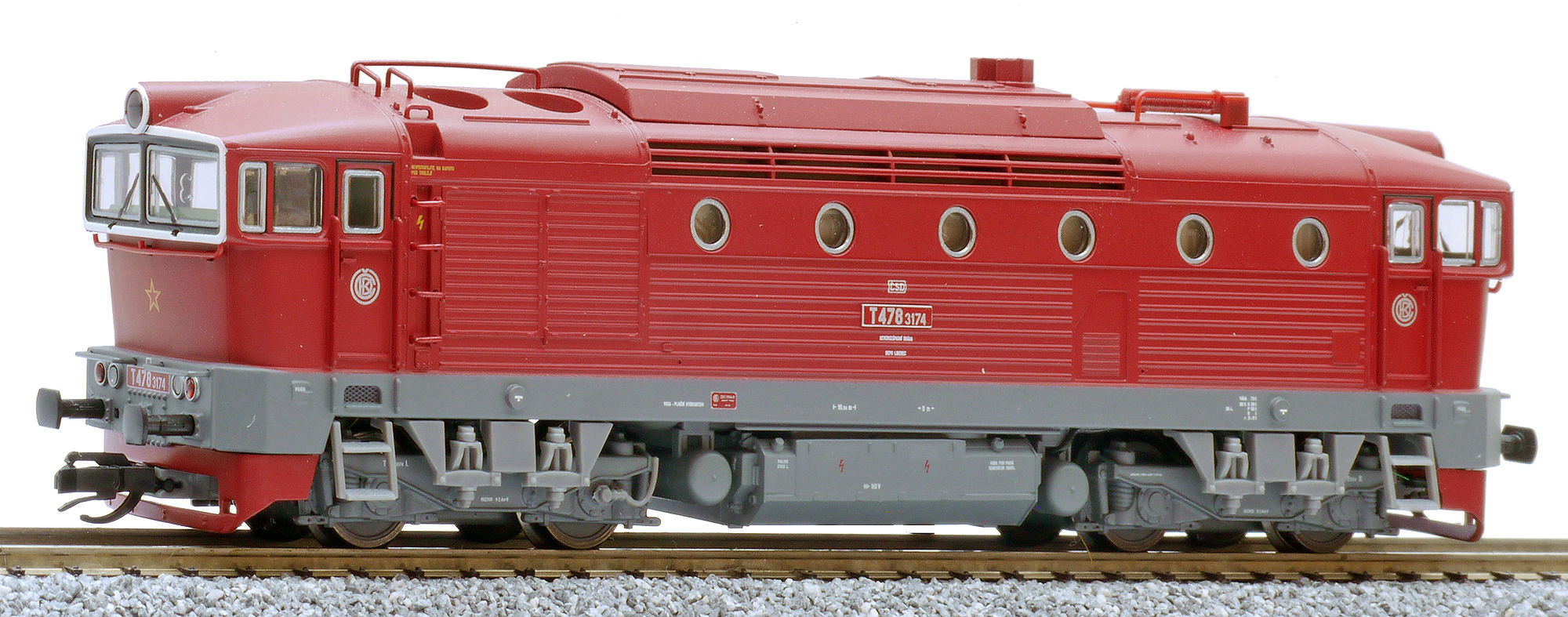 Popis   dieselová lokomotiva červená s šedým pojezdem