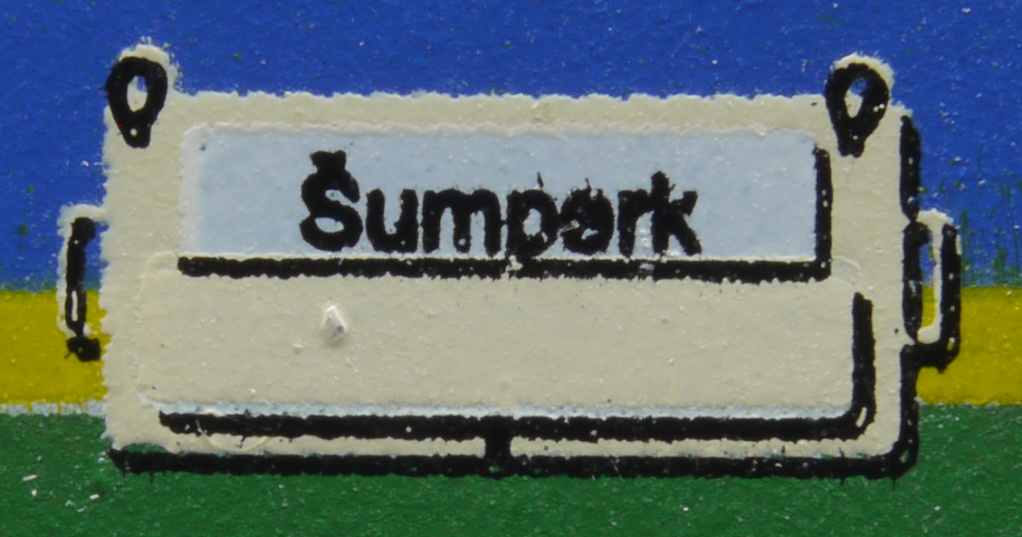 Popis   zelený-modrý-bílý s šedou střechou "Železnice Desná", označení "Ježek"