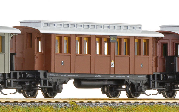 osobní vůz hnědý se světle šedou střechou 3. tř.