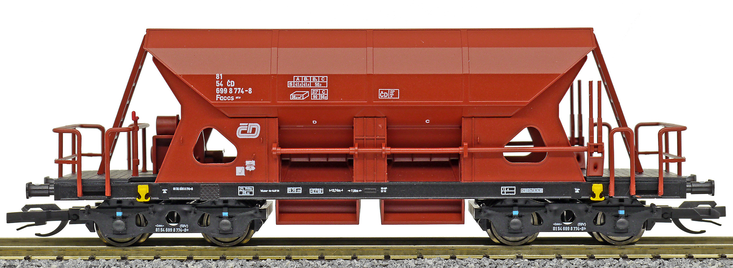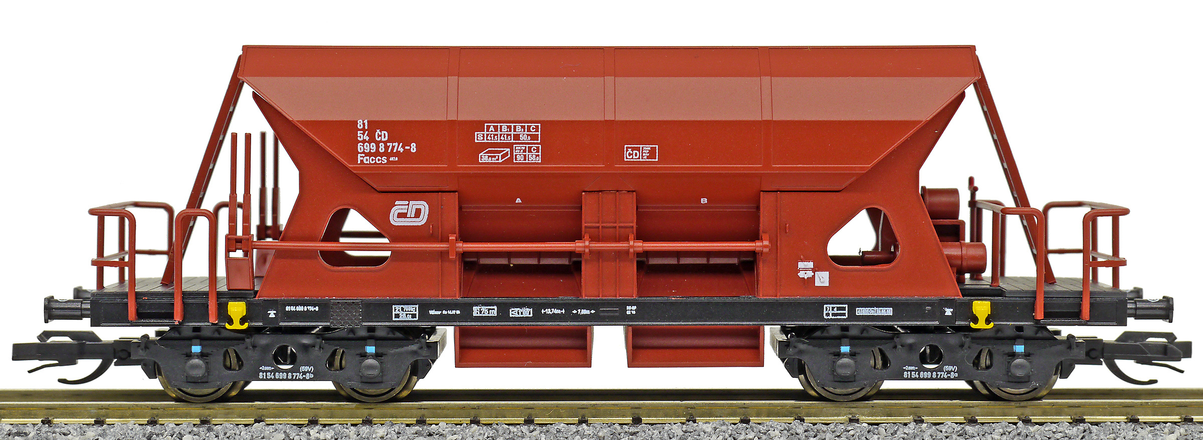 | • 81 54 699 8 774-8 | → | nákladní, s podvozky, ve vlastnictví železniční správy, pro mezinárodní dopravu dle zvláštních umluv |