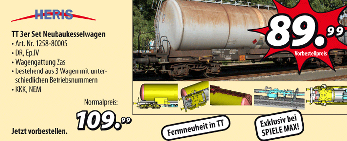 měřítko 1:120 - rozchod kolejí 12 mm kinematika krátkého spřáhla (KKK) podle normy NEM 358 3x135 mm - celková délka modelu přes nárazníky 3x4 - celkový počet náprav nebo rozložení náprav