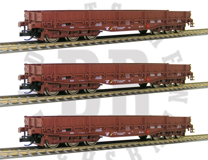 Popis   set tří červenohnědých nízkostěnných vozů Samms