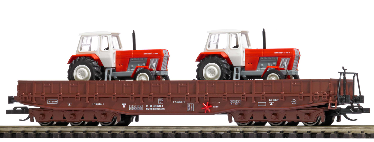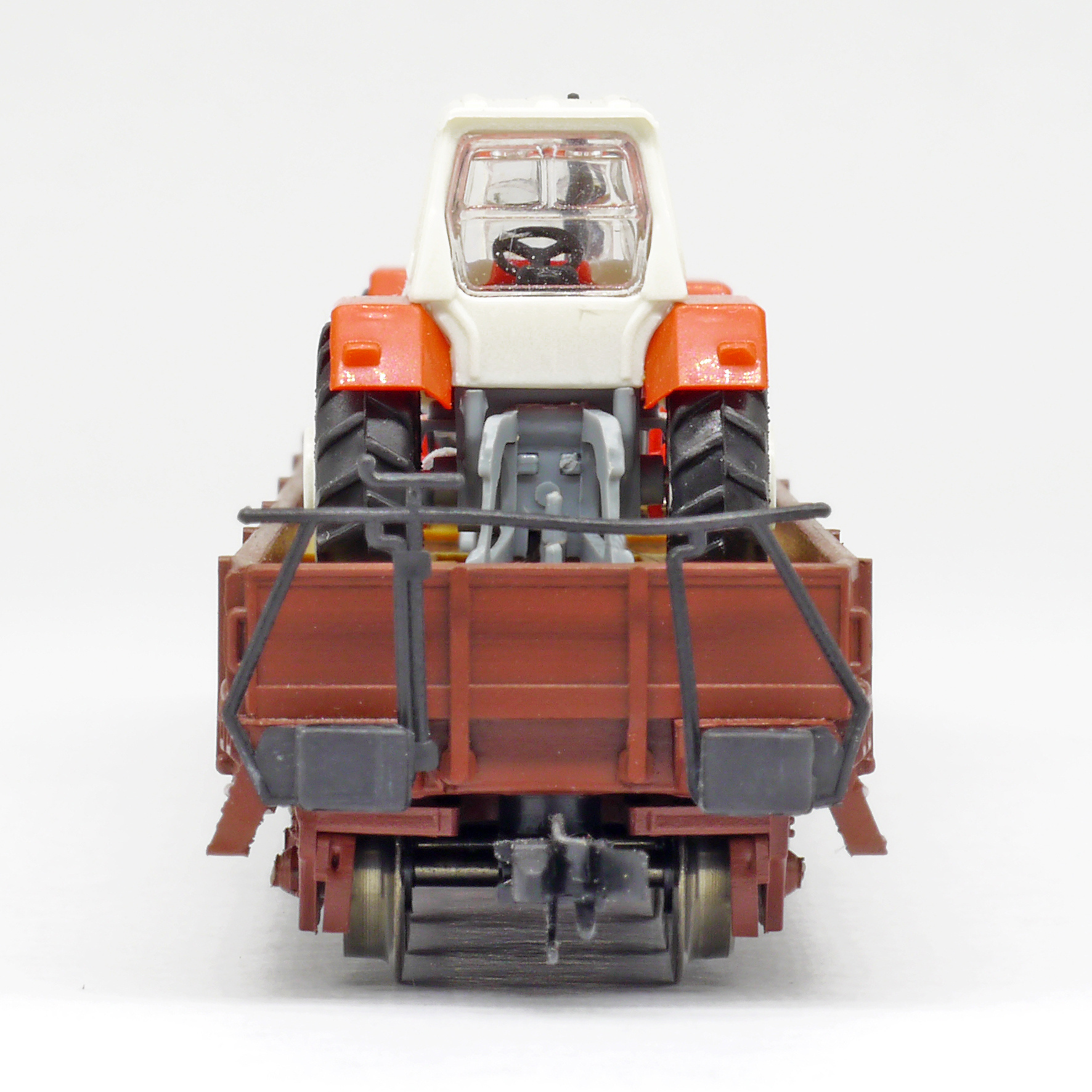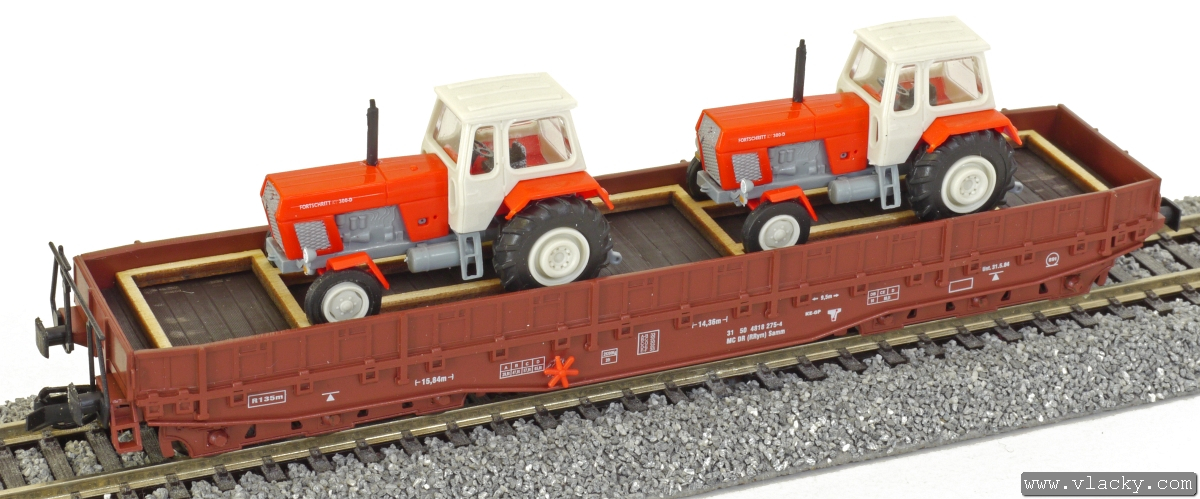 | nízkostěnný nákladní vůz červenohnědý s nákladem dvou traktorů ZT 300 |