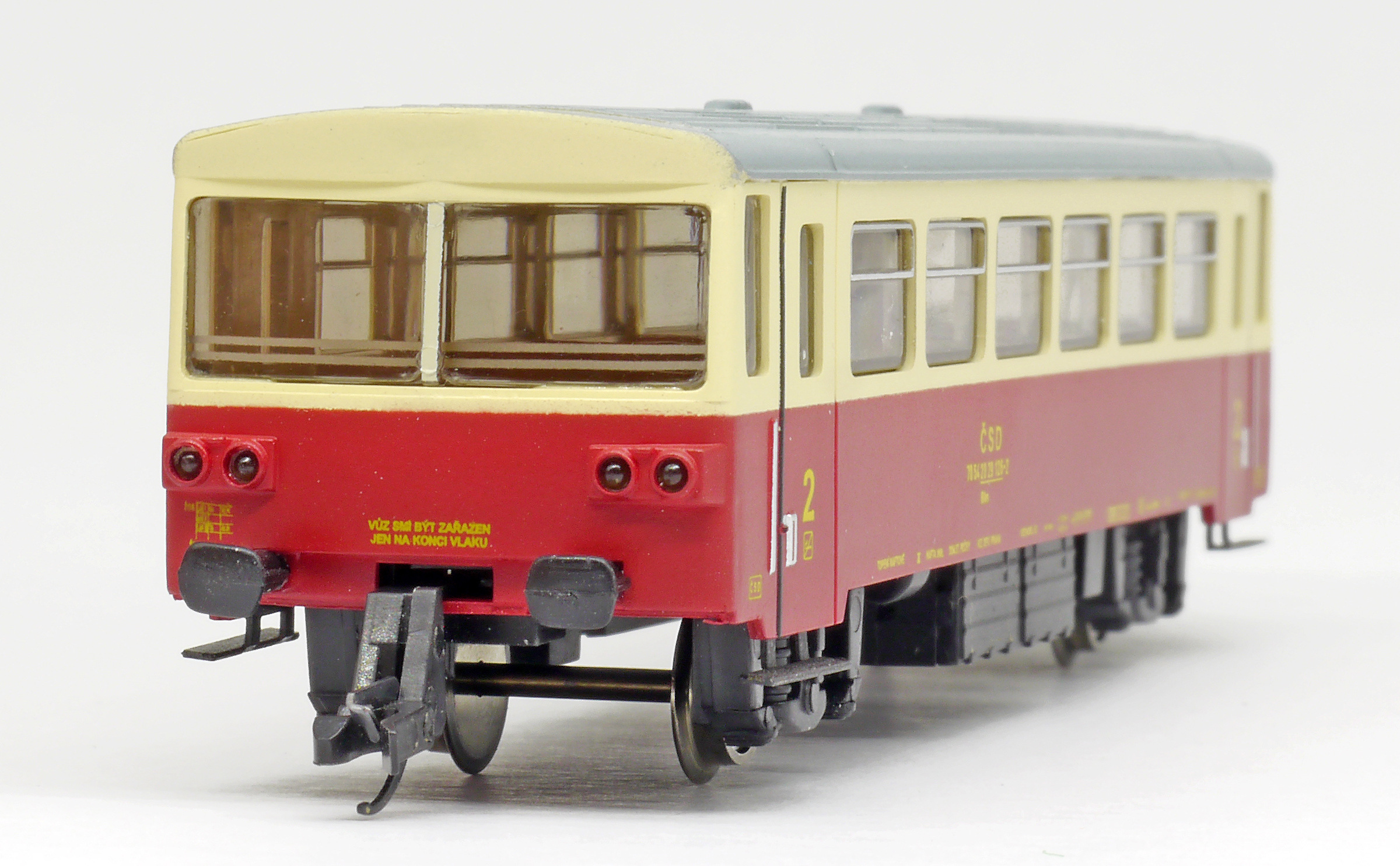 měřítko 1:120 - rozchod kolejí 12 mm vnitřní interiér vozu nenormované uchycení spřáhla 116 mm - celková délka modelu přes nárazníky 2 - celkový počet náprav nebo rozložení náprav 60 g - hmotnost brutto - model včetně prodejního obalu 32 g - hmotnost netto - pouze model