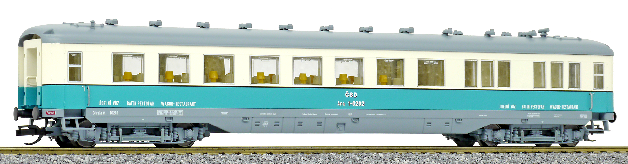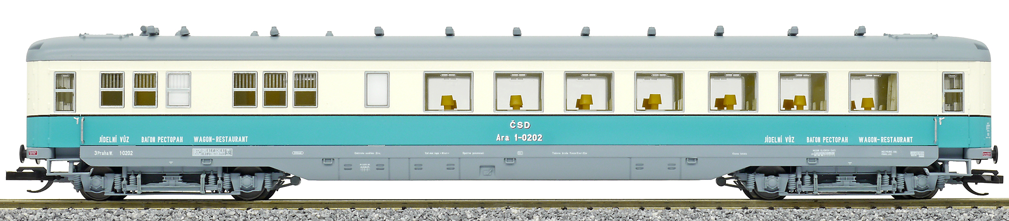| jídelní vůz modrý-slonová kost s šedou střechou |