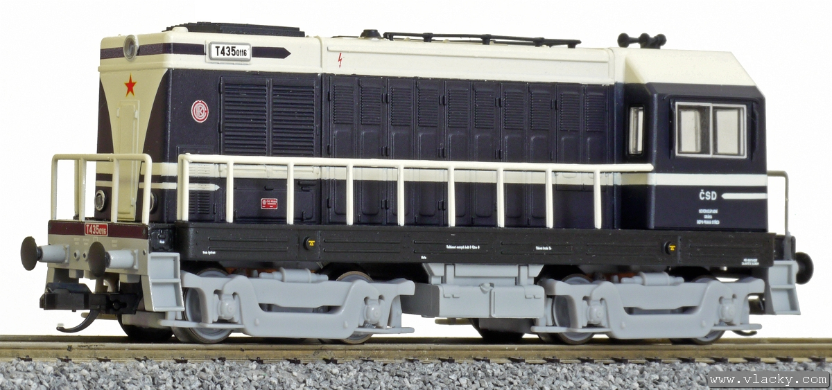 | dieselová lokomotiva tmavě modrá-světle šedá, černý rám a šedý pojezd |