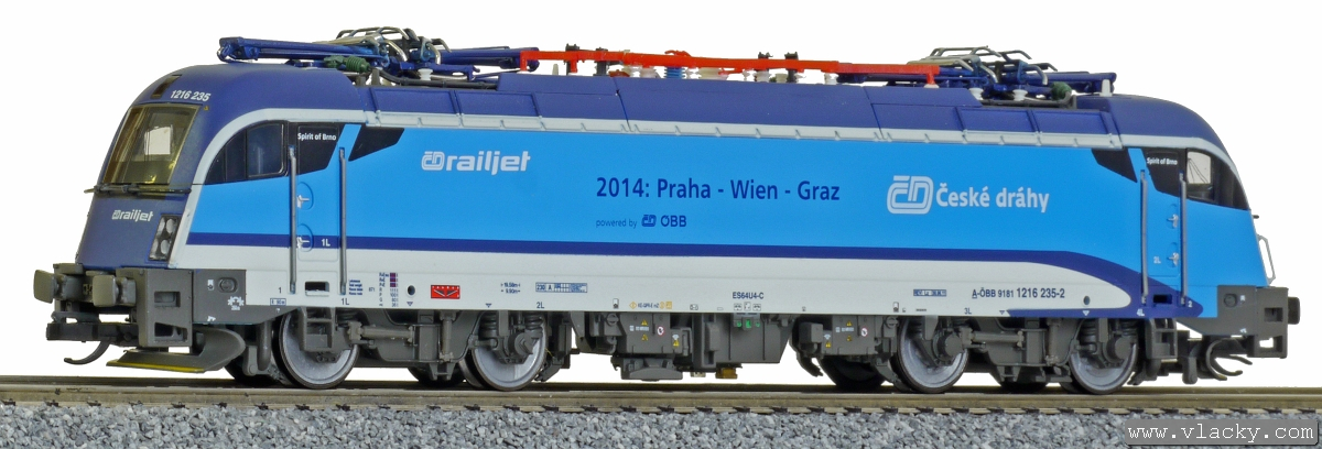 | elektrická lokomotiva modrá-bílá „ČD Railjet / Spirit of Brno“ |