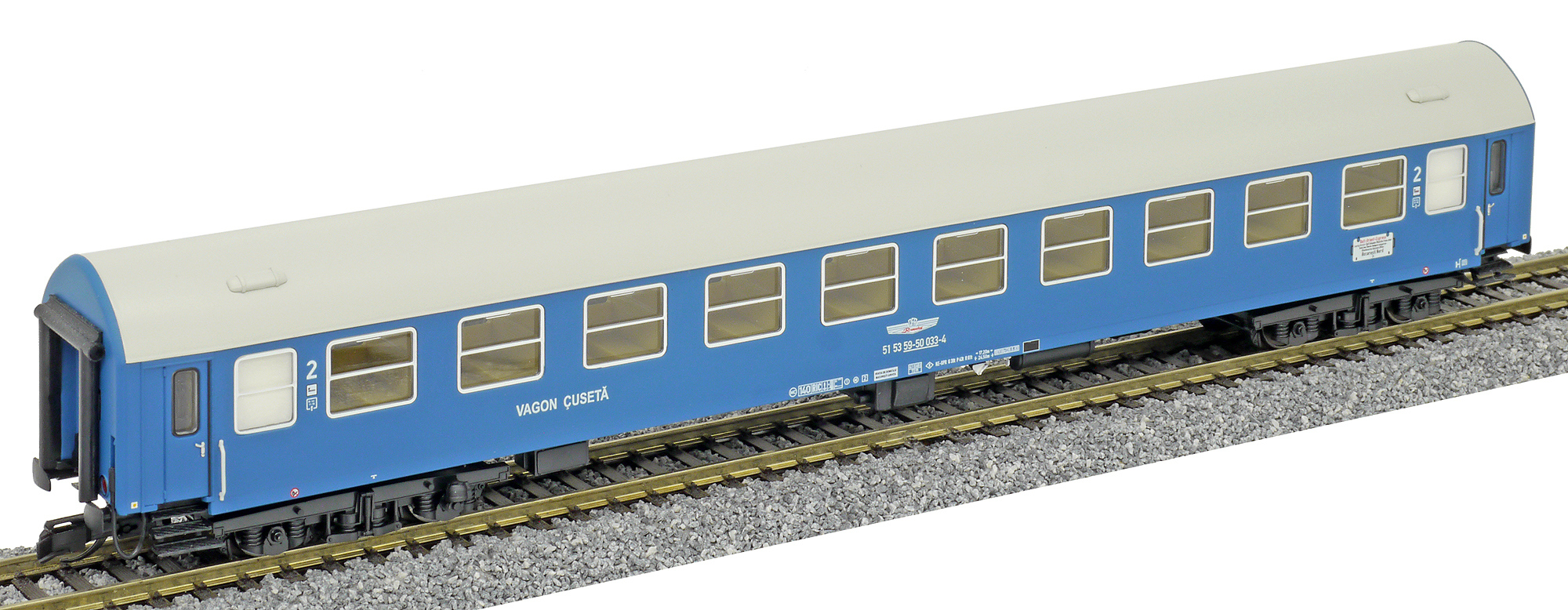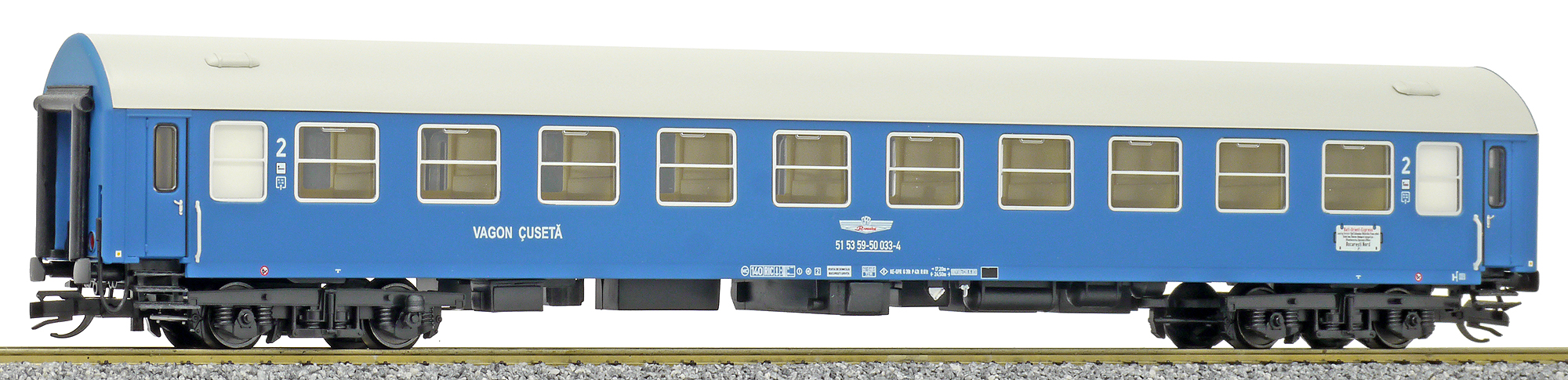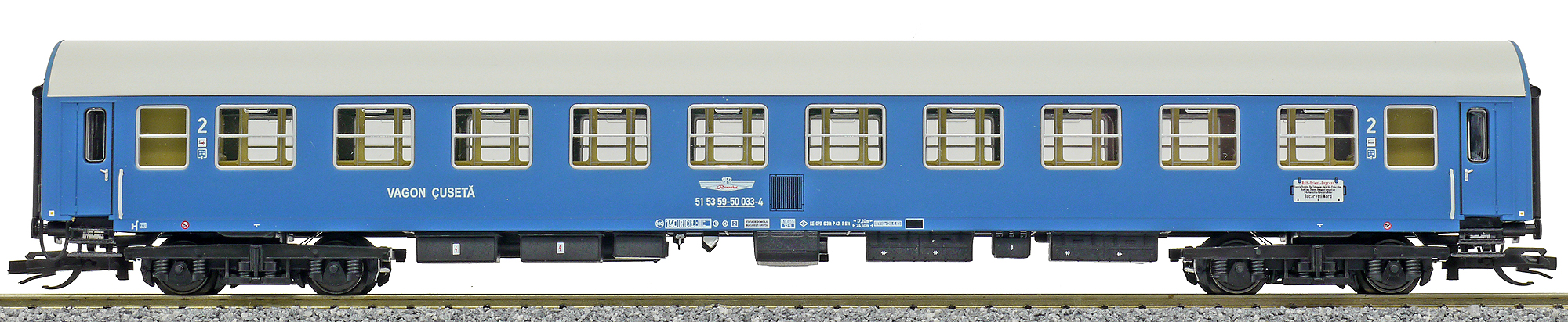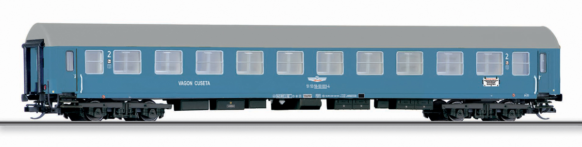 Popis   lehátkový vůz modrý s šedou střechou 2. tř.