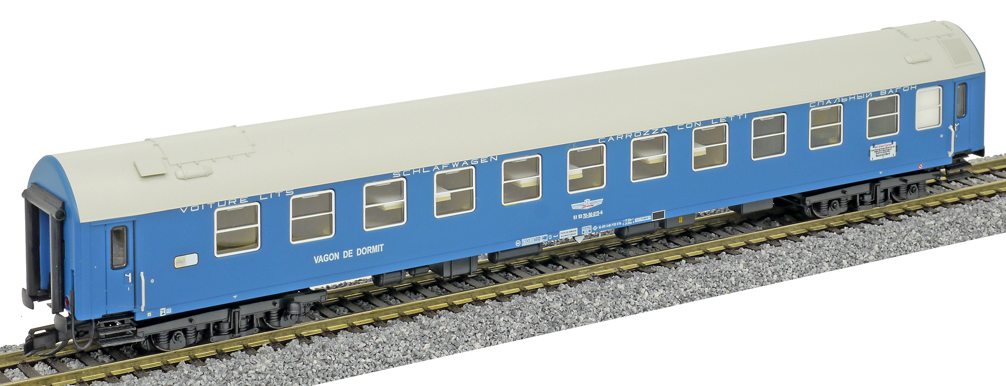Popis   lůžkový vůz modrý s šedou střechou 2. tř.