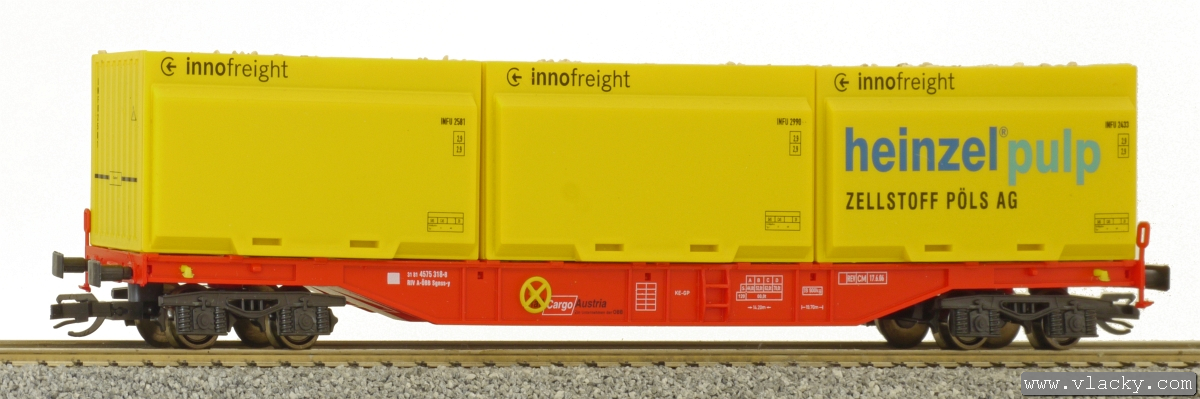 | • 31 81 4575 318-8 | → | nákladní, s podvozky, pevný rozchod, ve vlastnictví železniční správy, RIV, PPV |