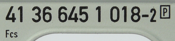 | • 41 36 645 1 018-2 | → | kontrolní číslice |
