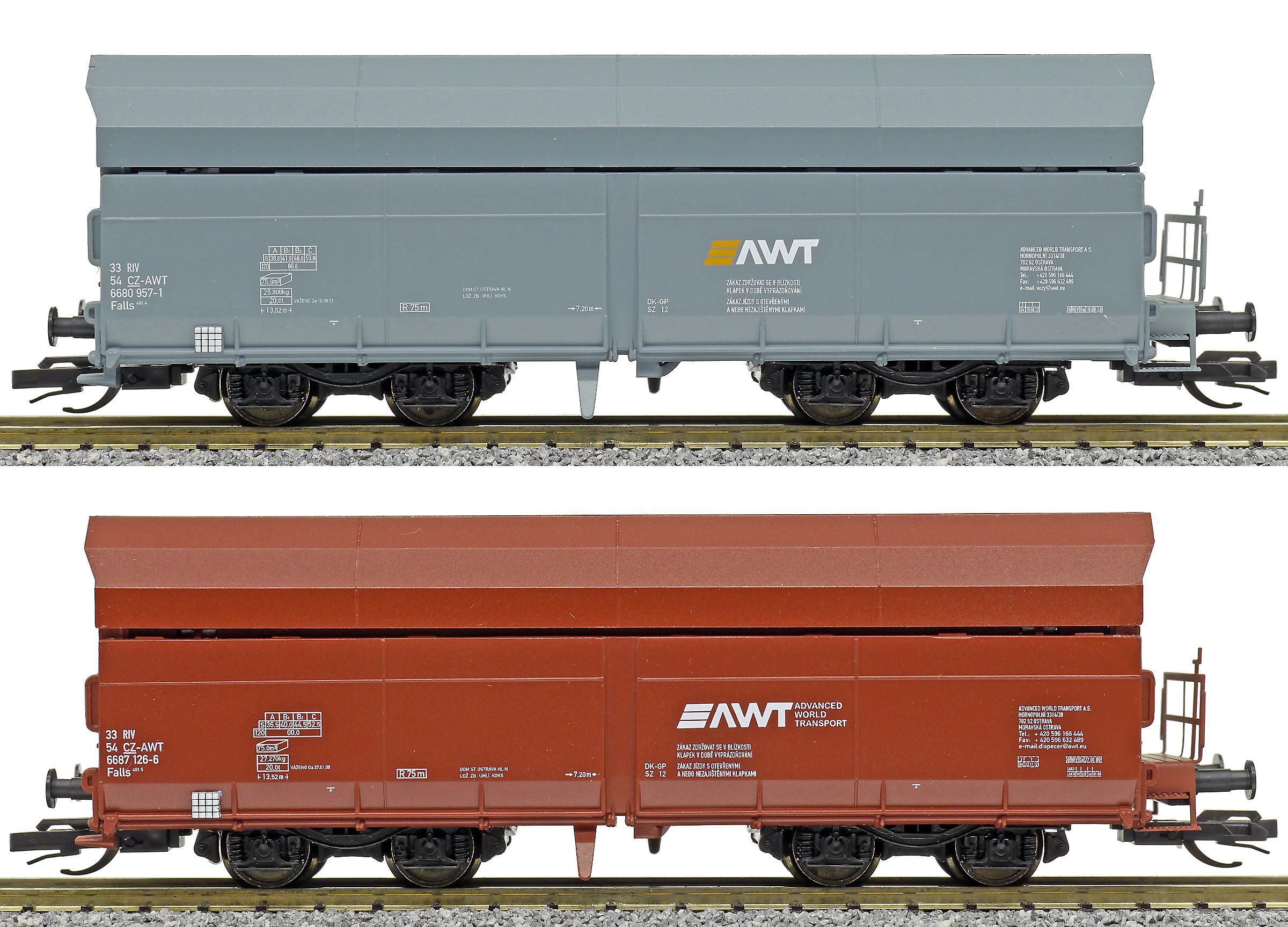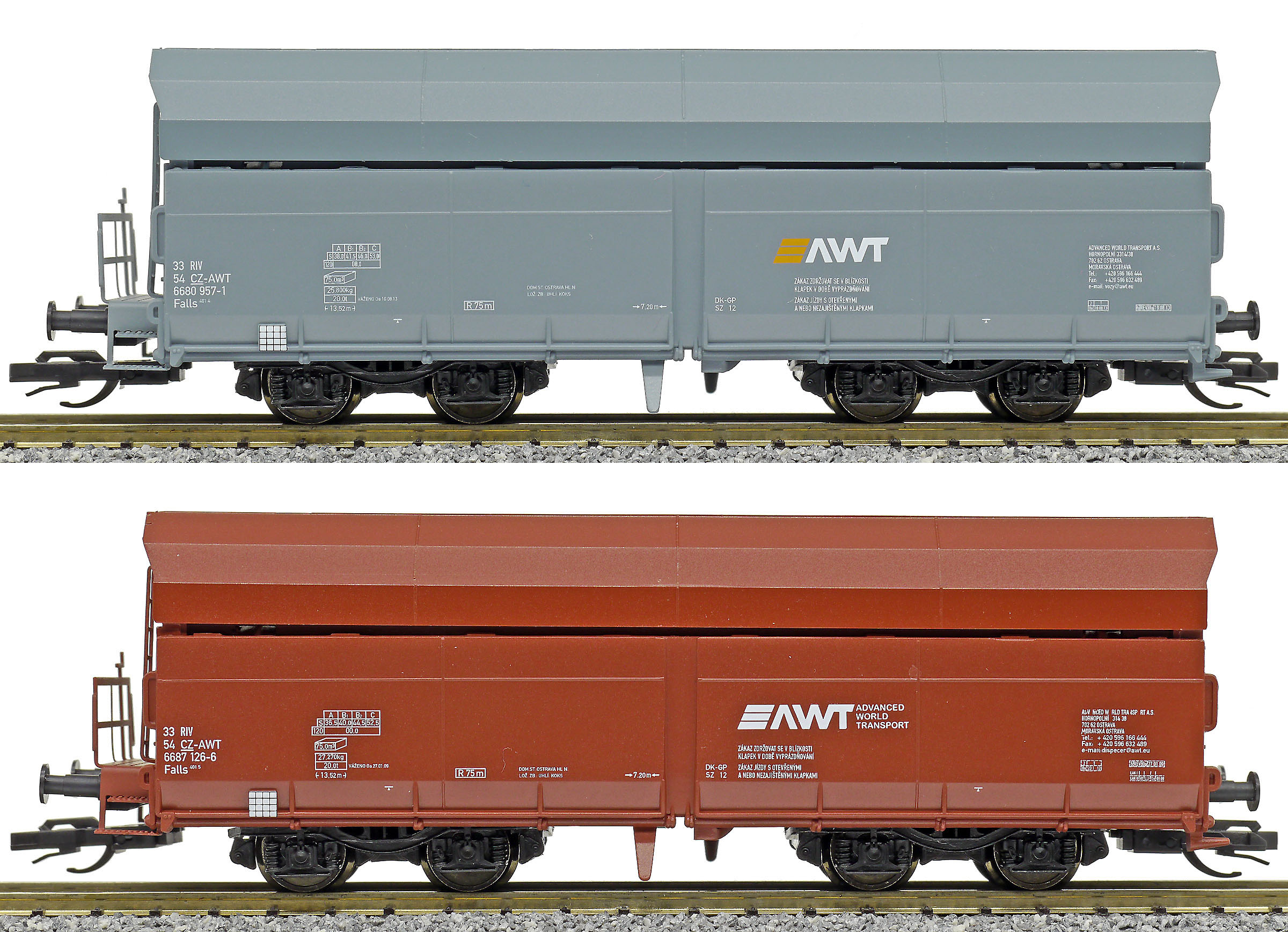 | nákladní samovýsypný vůz červenohnědý s logem „AWT“ |