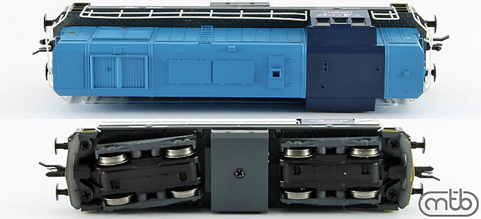 měřítko 1:120 - rozchod kolejí 12 mm osvětlení - 3 reflektory vpředu, 2 světla vzadu, přepínatelné podle směru jízdy 4 hnané nápravy 0 bandážovaných náprav kinematika krátkého spřáhla (KKK) podle normy NEM 358 digitální rozhraní podle NEM 662 s konektorem Next18 setrvačník 112 mm - celková délka modelu přes nárazníky 4 - celkový počet náprav nebo rozložení náprav