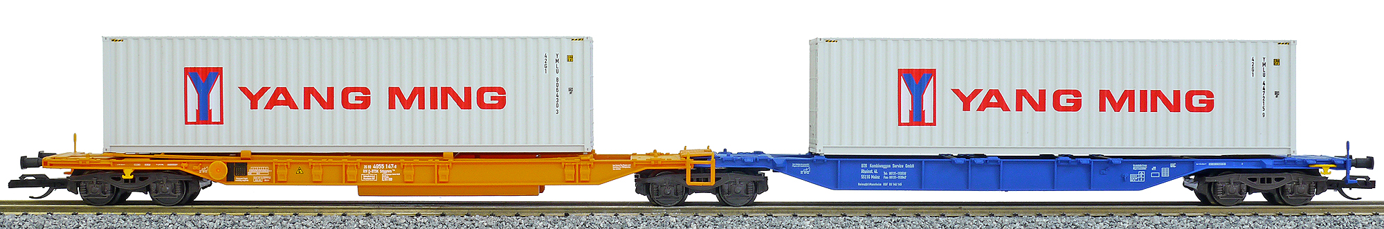 | dvoudílný kontejnerový vůz modrý-oranžový se dvěma kontejnery 40' |