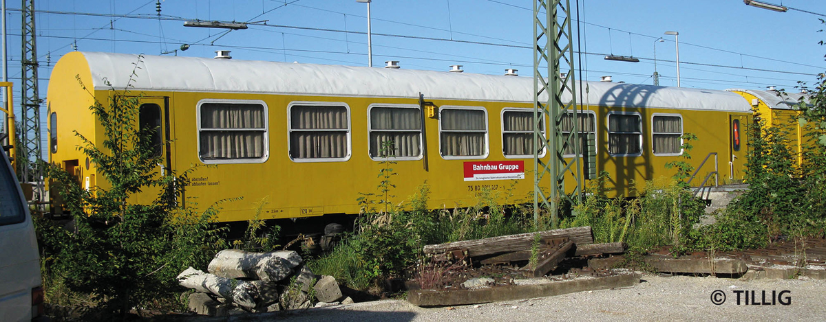 | obytný vůz žlutý s šedou střechou do pracovního vlaku |