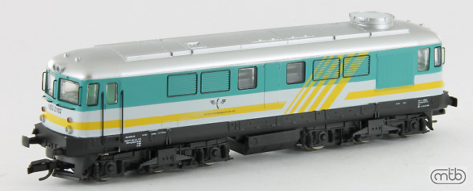 měřítko 1:120 - rozchod kolejí 12 mm osvětlení - 3 reflektory přepínatelné podle směru jízdy 6 hnaných náprav 0 bandážovaných náprav kinematika krátkého spřáhla (KKK) podle normy NEM 358 digitální rozhraní podle NEM 658 s konektorem PluX16 pojezd s kuličkovými ložisky setrvačník 140 mm - celková délka modelu přes nárazníky 6 - celkový počet náprav nebo rozložení náprav 200 g - hmotnost netto - pouze model