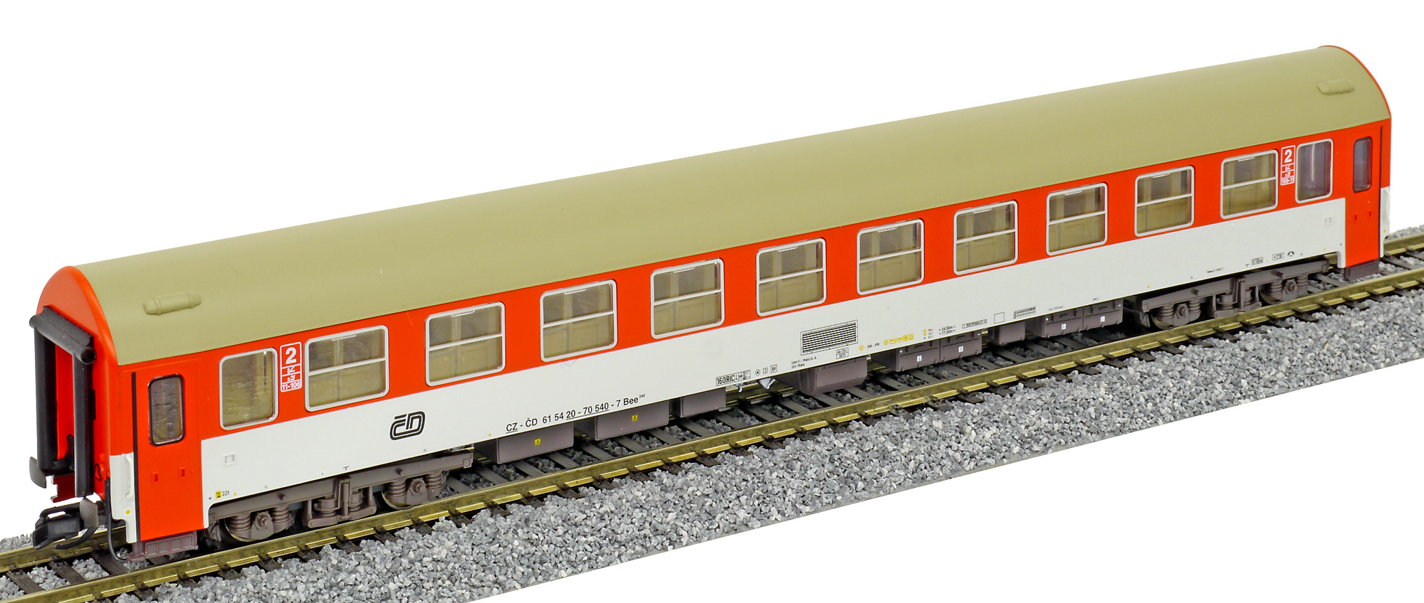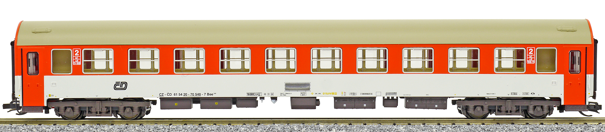 | rychlíkový vůz červený-bílý s šedou střechou 2. tř. |