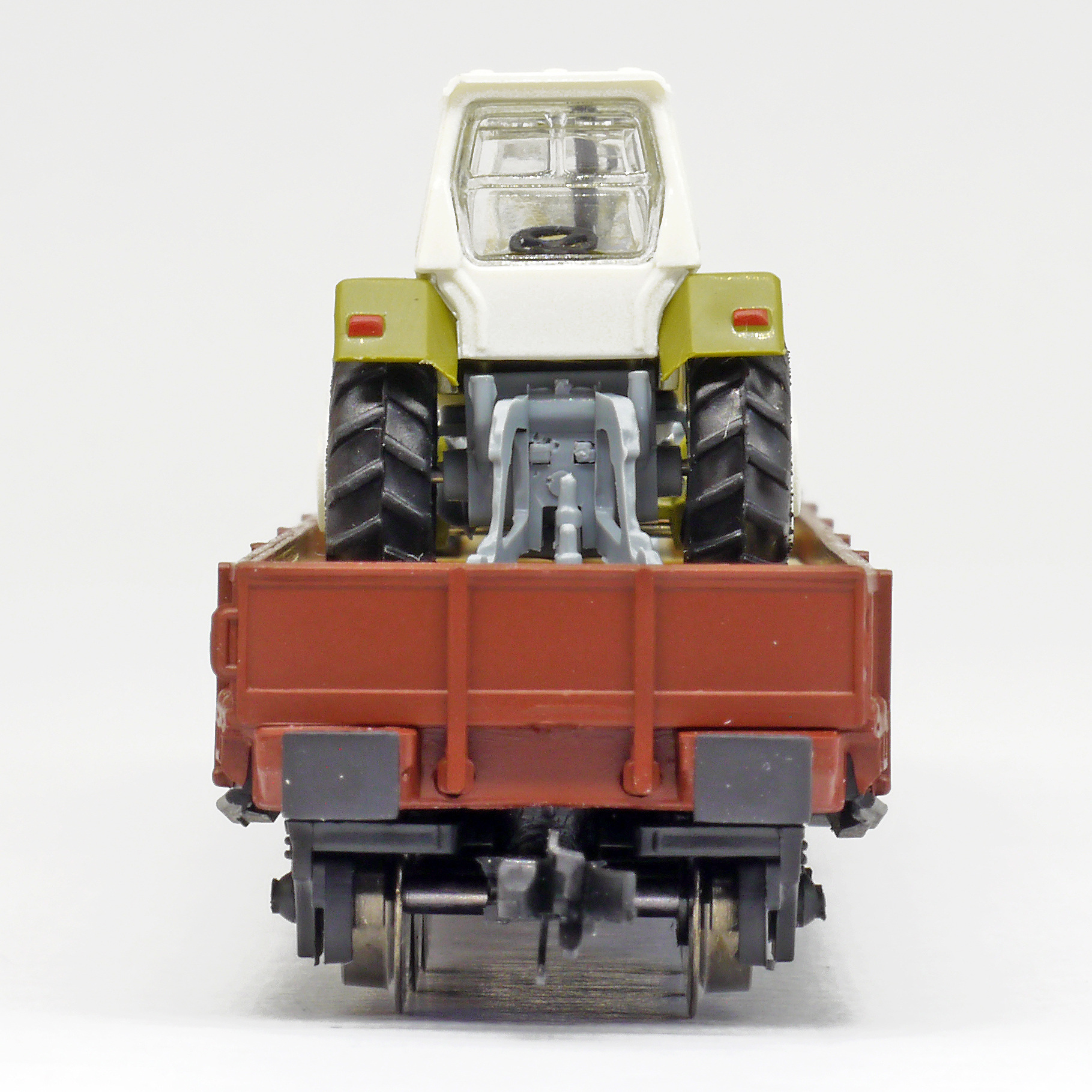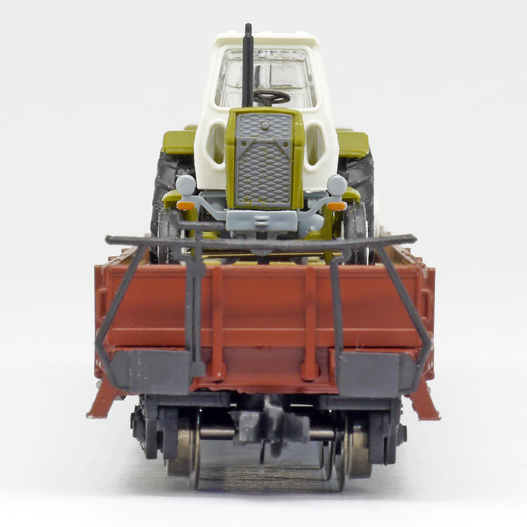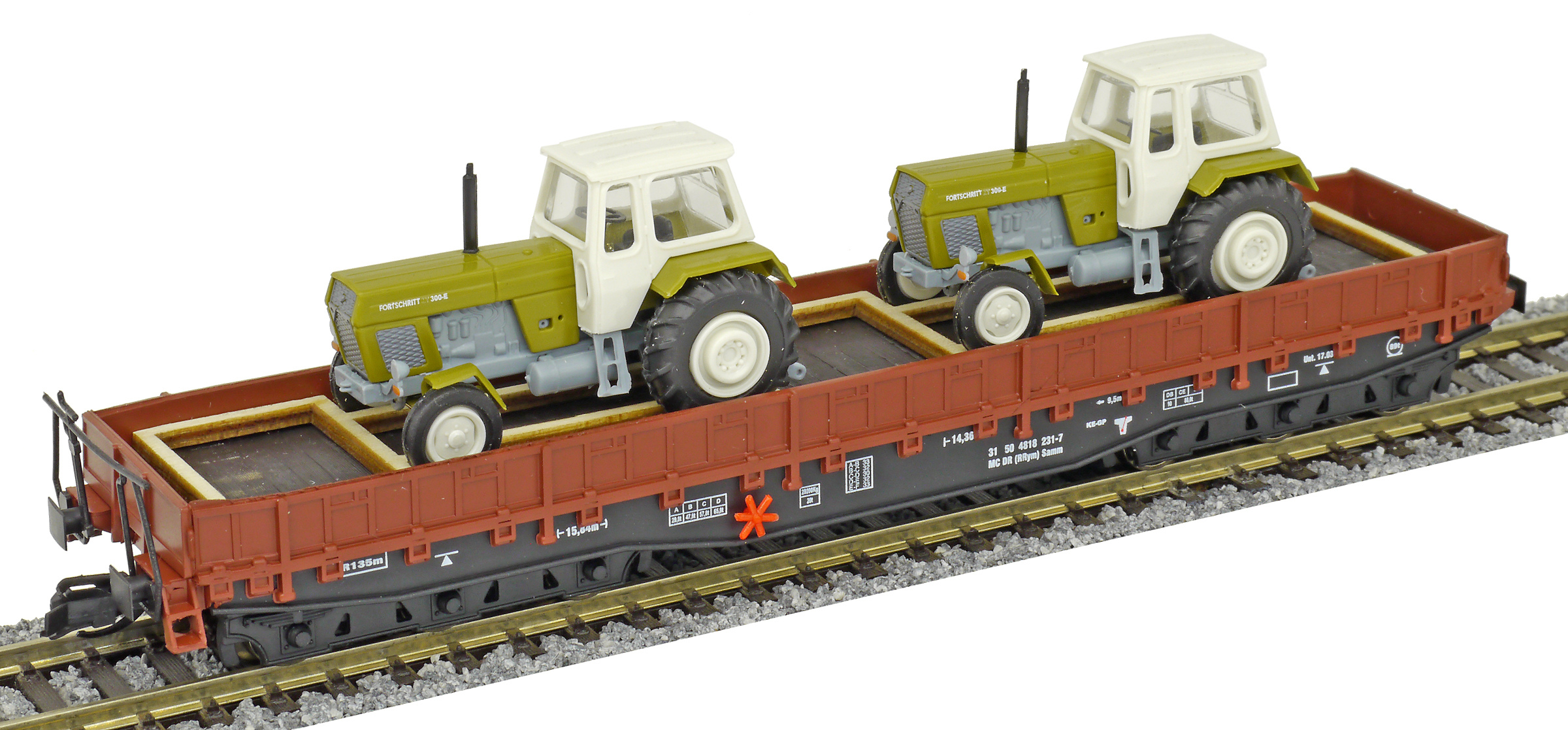 | nízkostěnný vůz červenohnědý s nákladem dvou traktorů ZT300 |