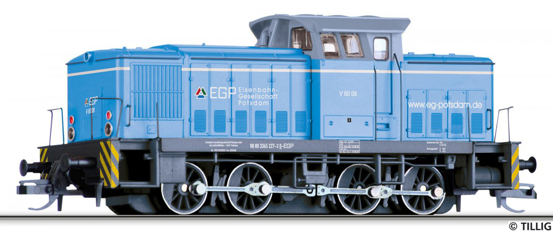 | dieselová lokomotiva v barevném schematu „Eisenbahngesellschaft Potsdam mbH“ |
