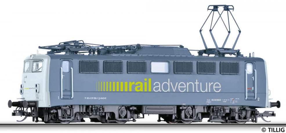 | elektrická lokomotiva v barevném schematu „RailAdventure GmbH“ |