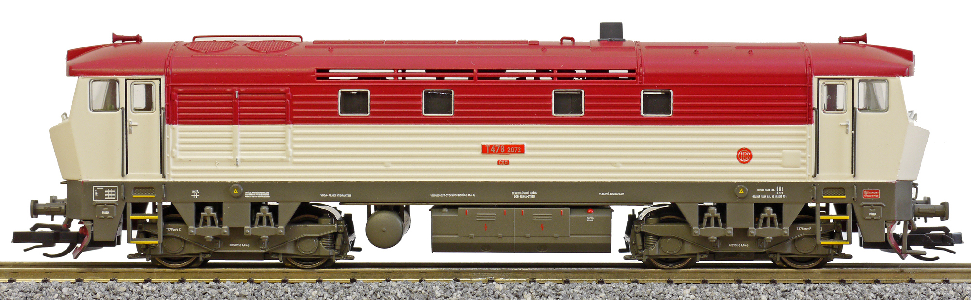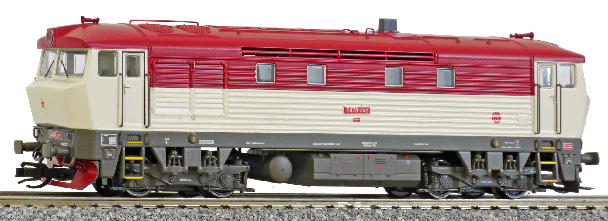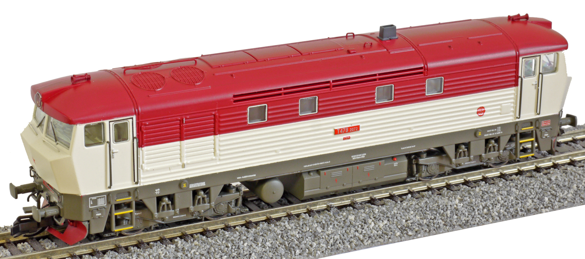 | dieselová lokomotiva červená-světle šedá |