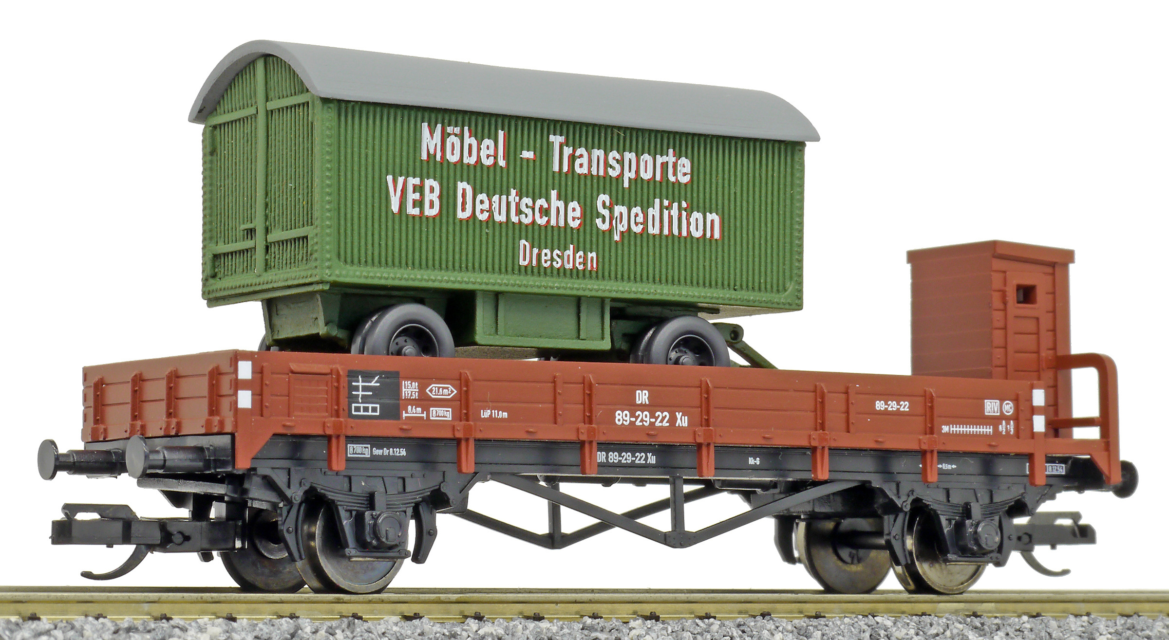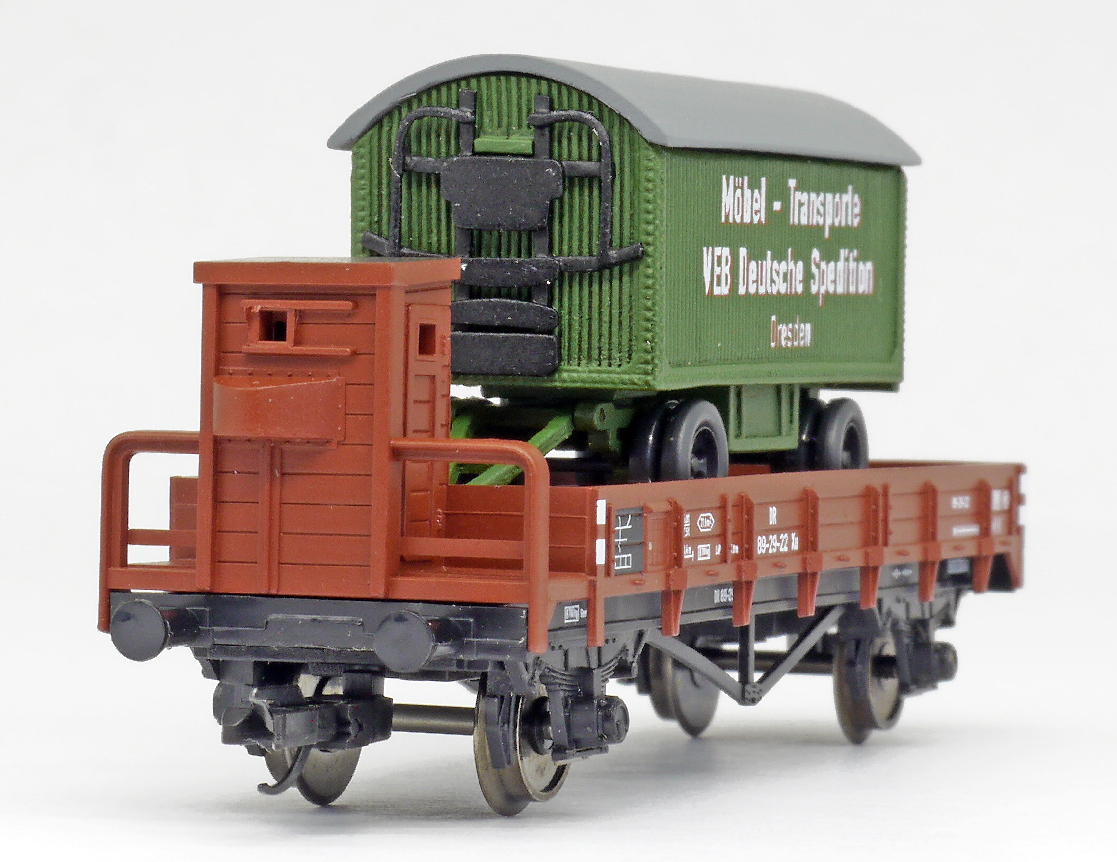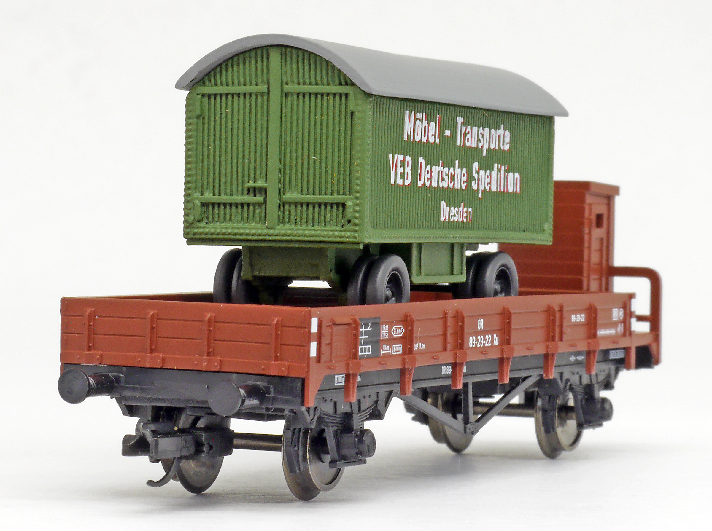| nízkostěnný nákladní vůz ložený návěsem na nábytek |