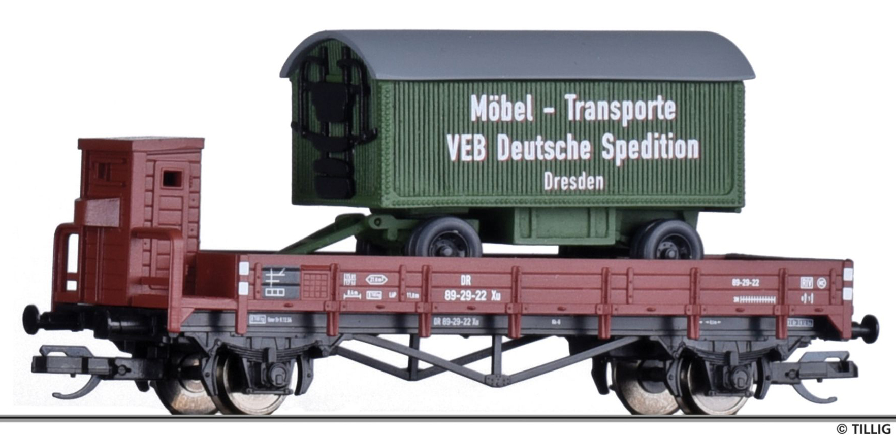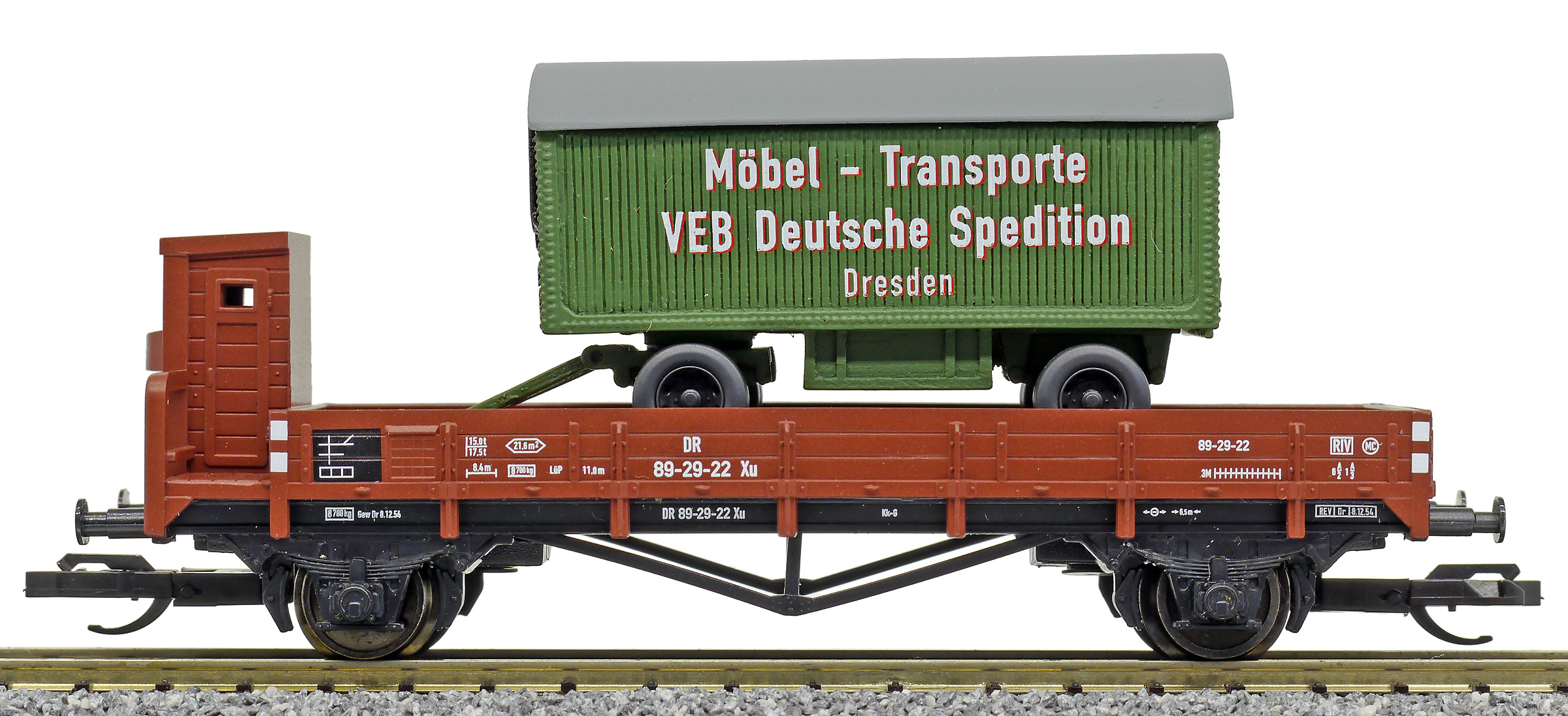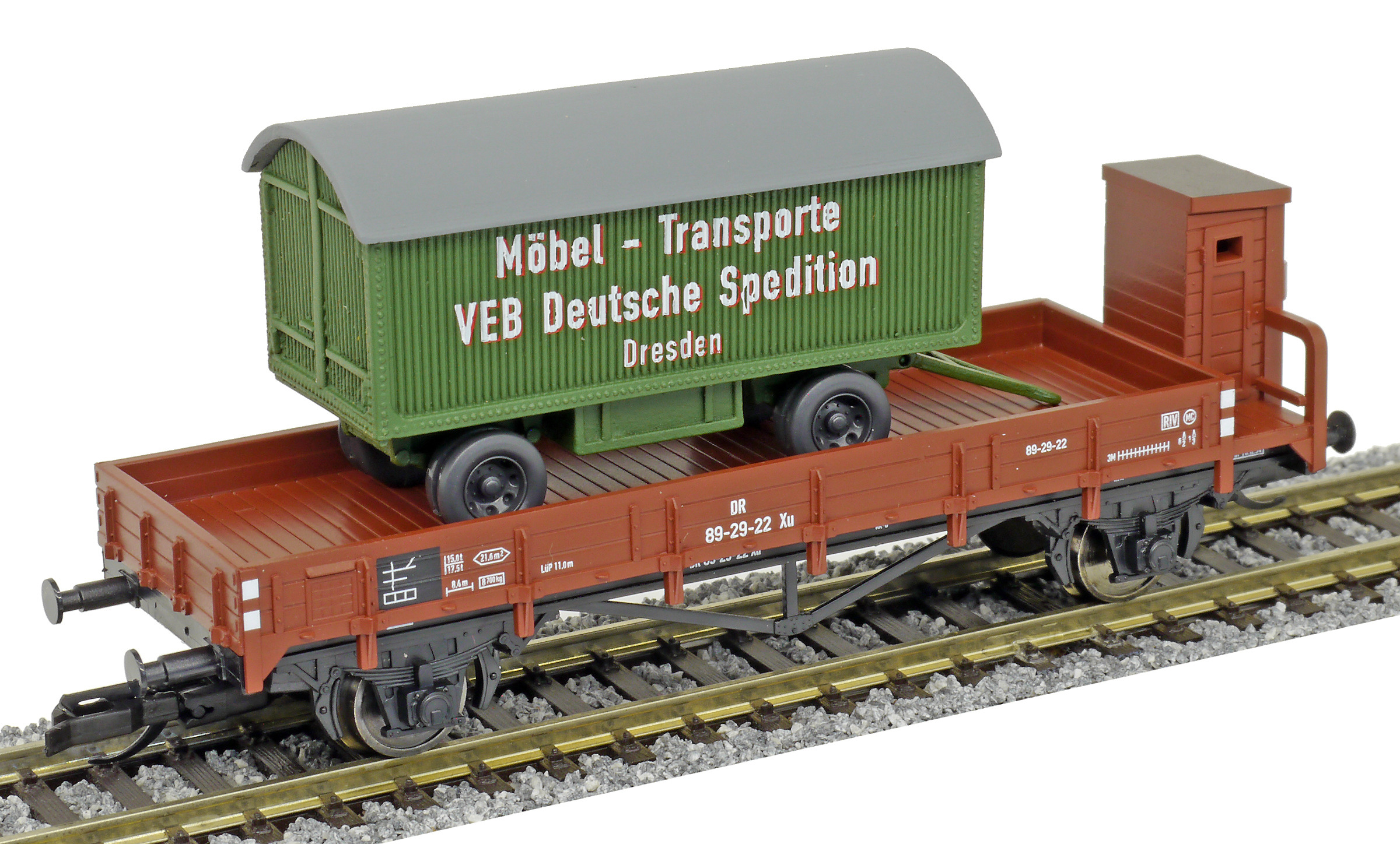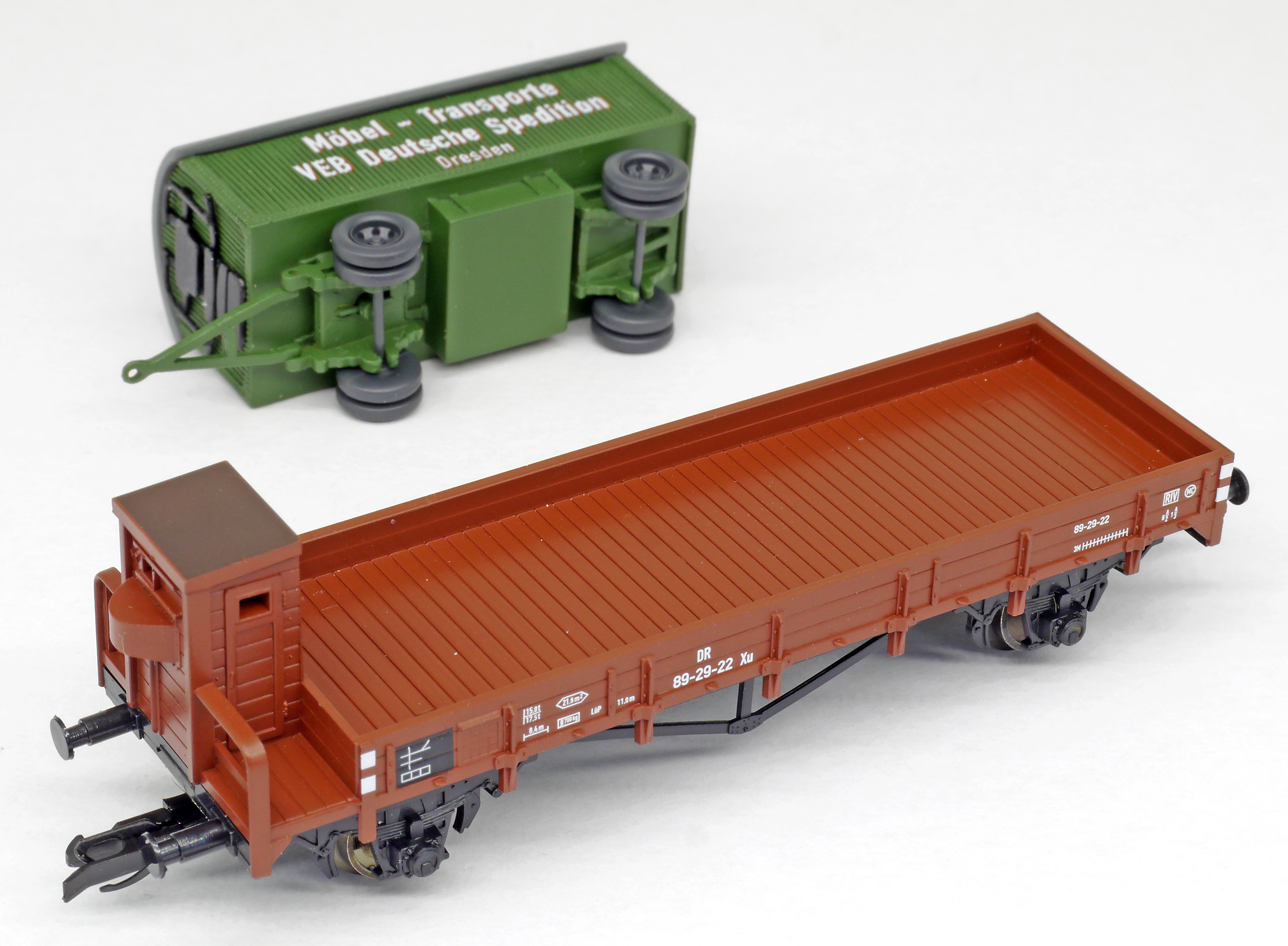 | nízkostěnný nákladní vůz ložený návěsem na nábytek |
