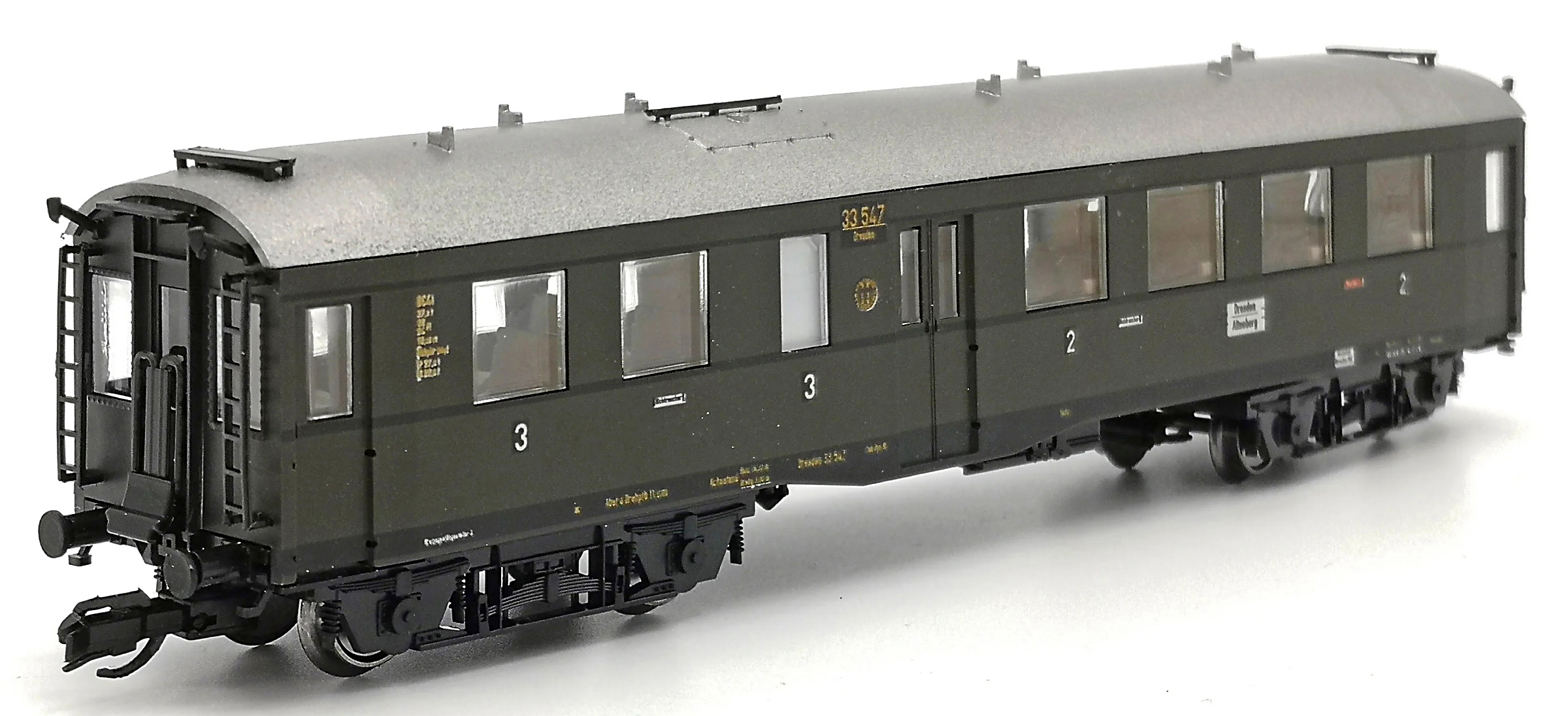 | osobní vůz tmavě zelený s šedou střechou 2./3. tř. |