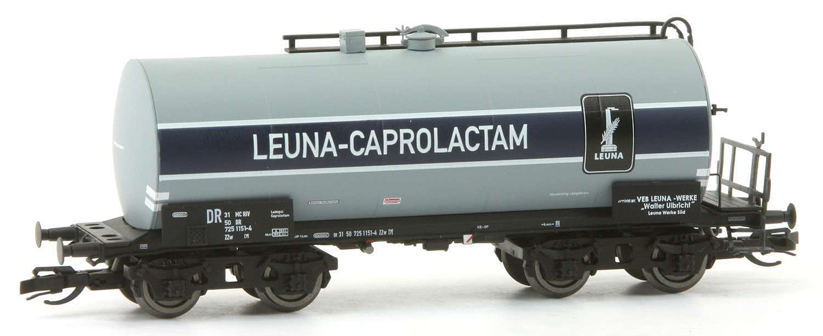 | kotlový vůz šedý s modrým pruhem „LEUNA-CAPROLACTAM“ |