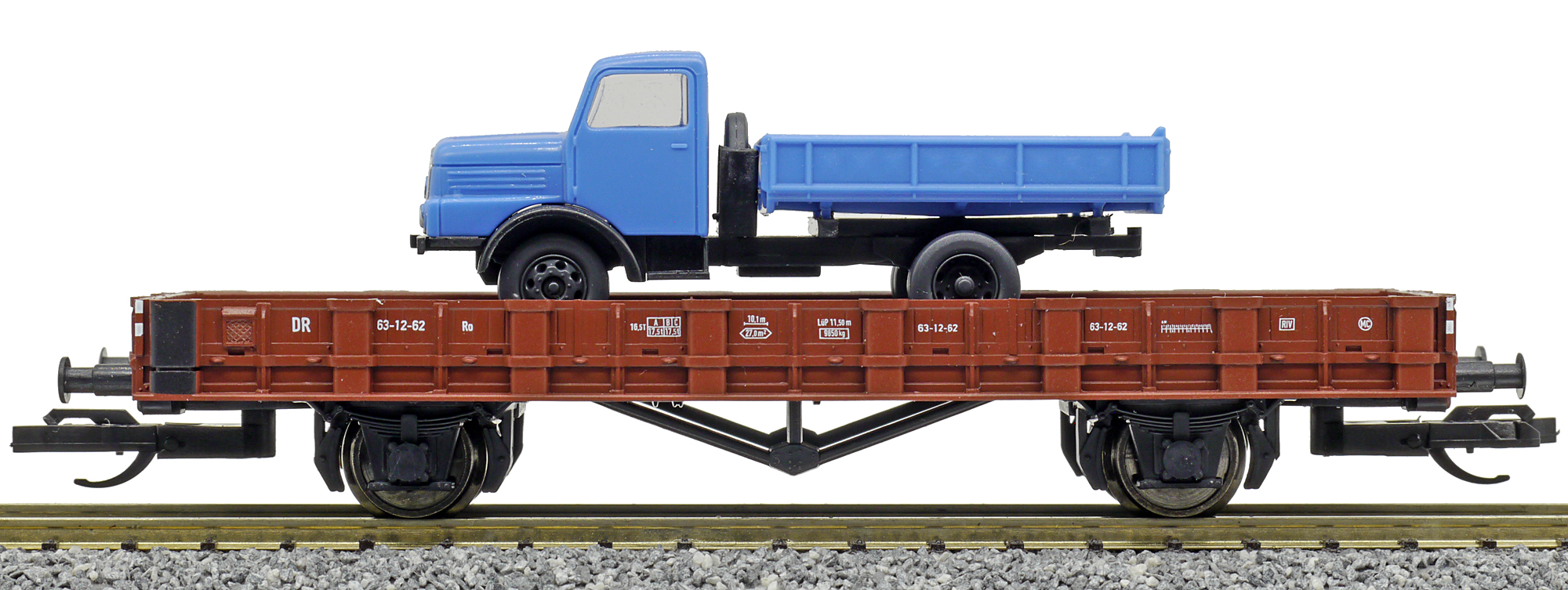 | nízkostěnný nákladní vůz červenohnědý ložený automobilem H3A Kipper |