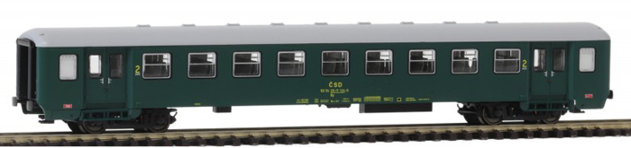 | osobní vůz zelený s šedou střechou 2. tř., depo Bratislava |