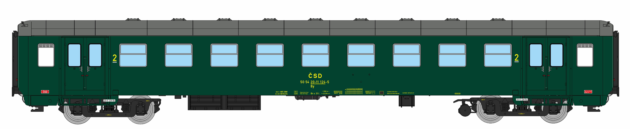 | • 50 54 20-11 124-5 | → | vůz druhé třídy 10 oddílů |