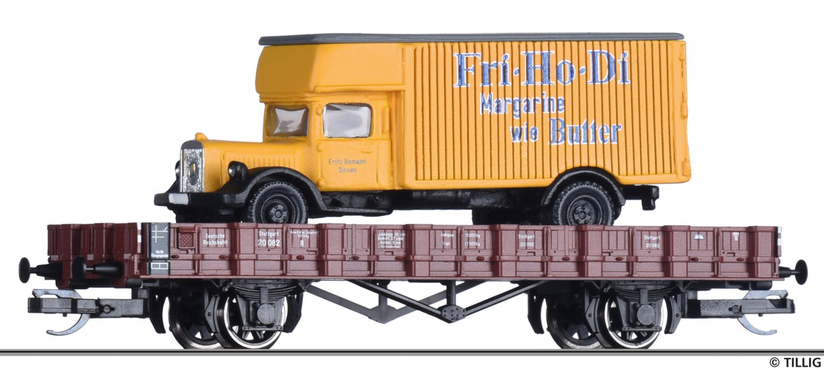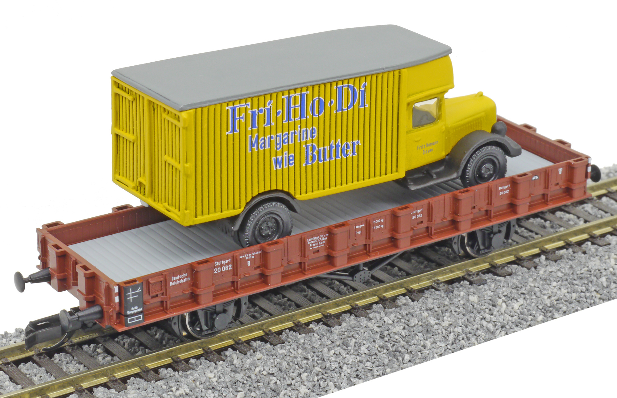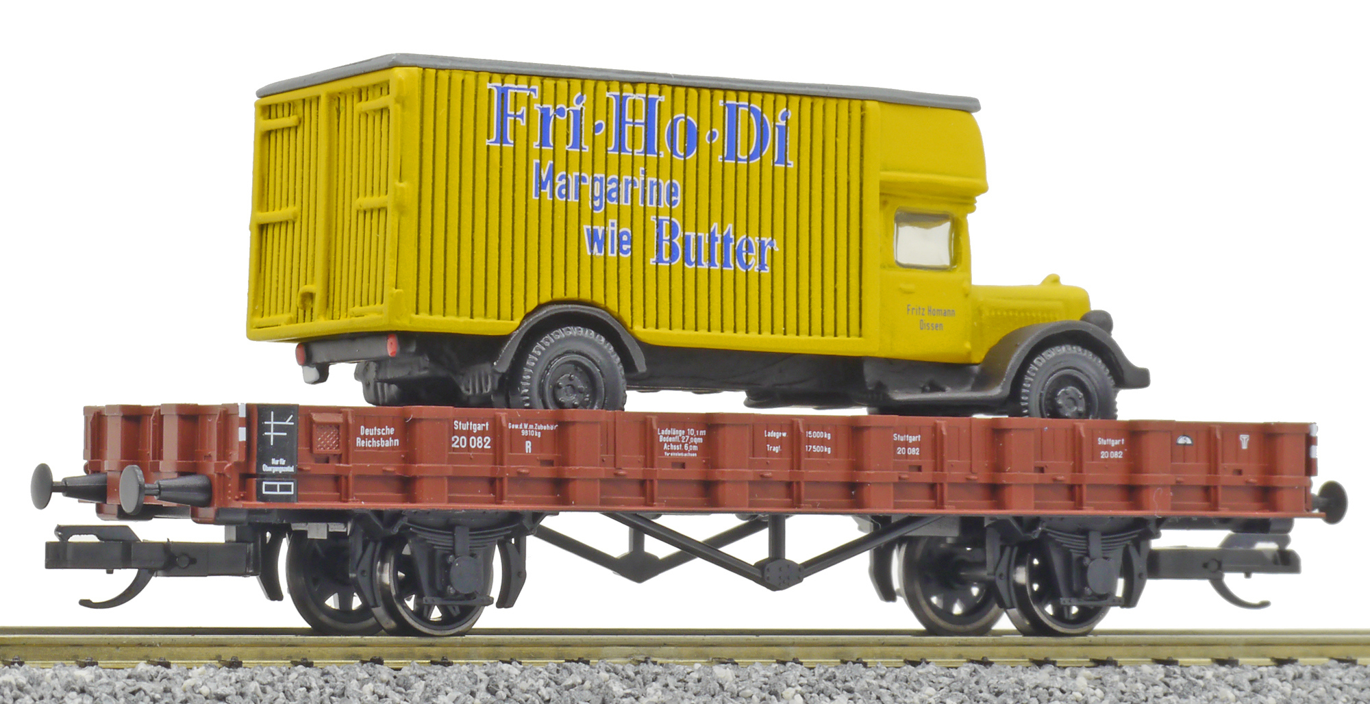 | nízkostěnný vůz červenohnědý s nákladním vozem „Homann“ |