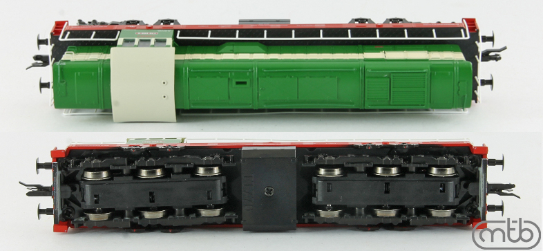 měřítko 1:120 - rozchod kolejí 12 mm osvětlení - 3 reflektory vpředu, 2 světla vzadu, přepínatelné podle směru jízdy 6 hnaných náprav 0 bandážovaných náprav kinematika krátkého spřáhla (KKK) podle normy NEM 358 digitální rozhraní podle NEM 662 s konektorem Next18 pojezd s kuličkovými ložisky 142 mm - celková délka modelu přes nárazníky 6 - celkový počet náprav nebo rozložení náprav 300 g - hmotnost brutto - model včetně prodejního obalu 205 g - hmotnost netto - pouze model