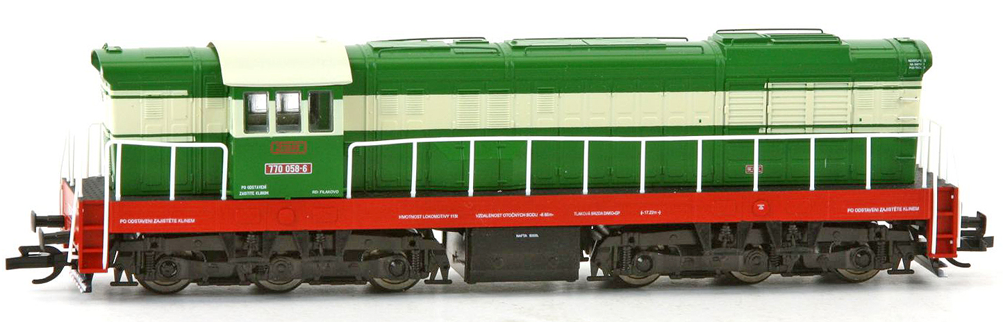 | dieselová lokomotiva zelená-slonová kost, červený rám |