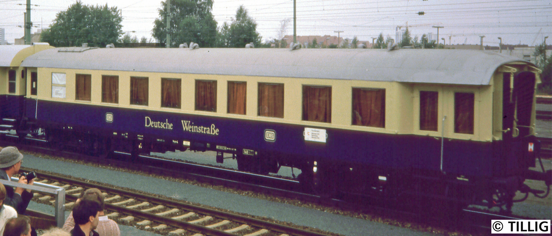 | salónní vůz modrý-slonová kost s šedou střechou „Deutsche Weinstraße“ |