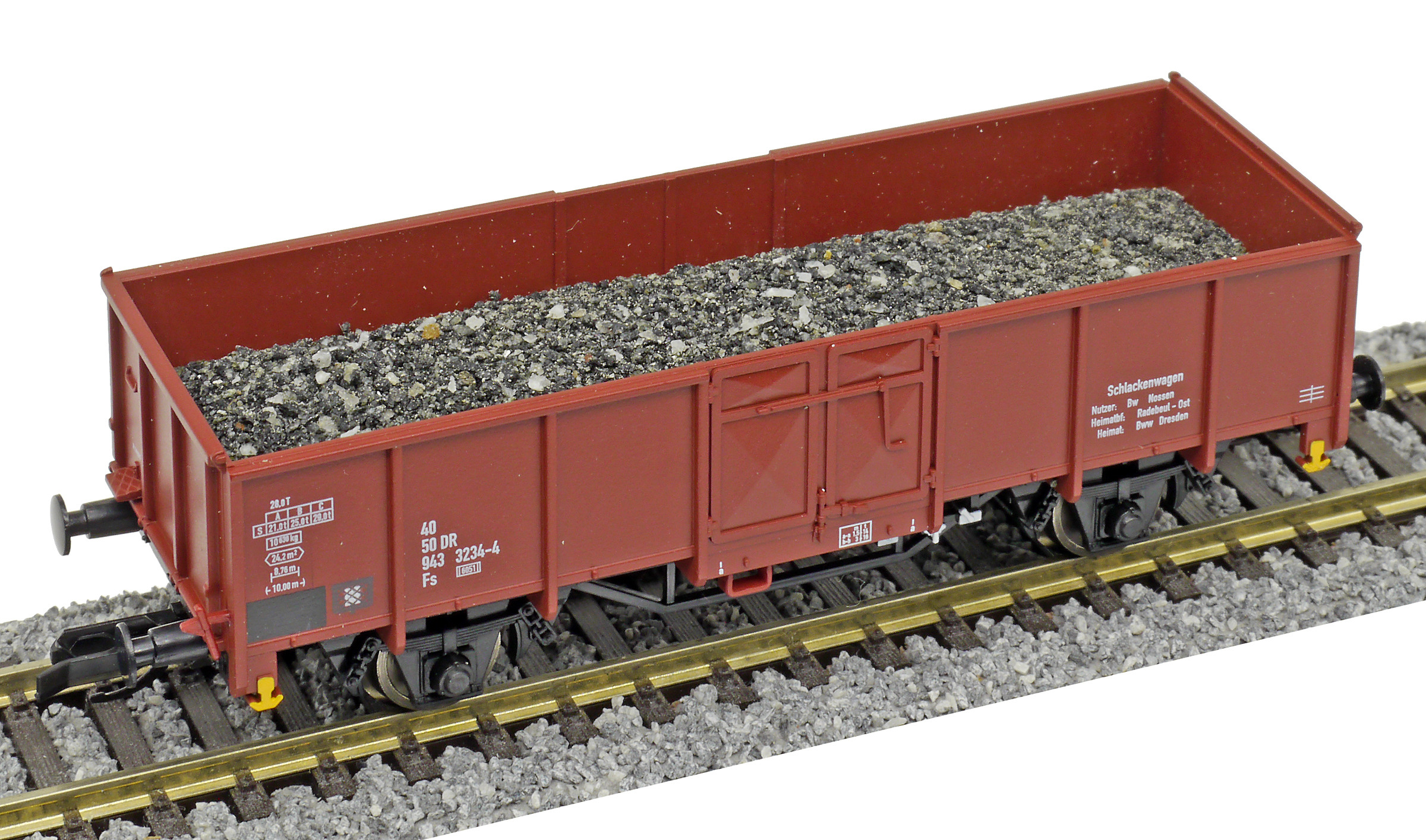 | otevřený nákladní vůz červenohnědý ložený struskou |