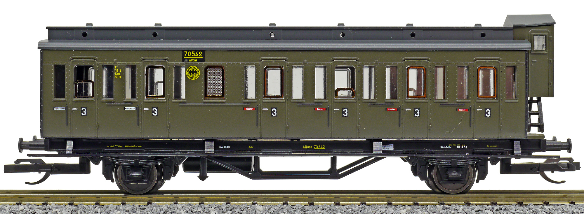 Popis   oddílový osobní vůz tmavě zelený s černou střechou 3. tř.