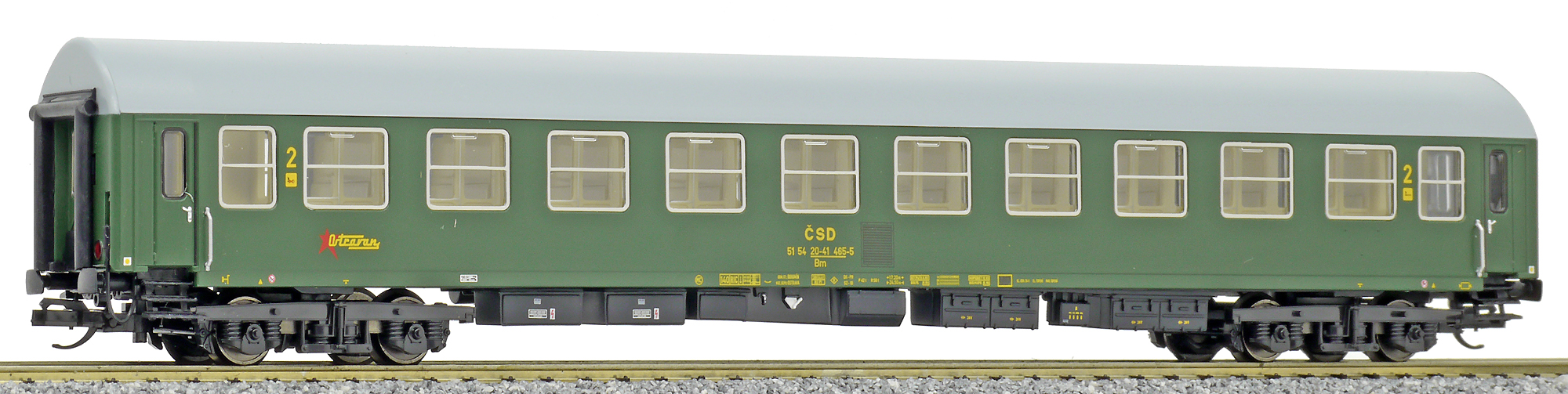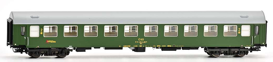 | rychlíkový vůz zelený s šedou střechou 2. tř. „Ostravan“ |